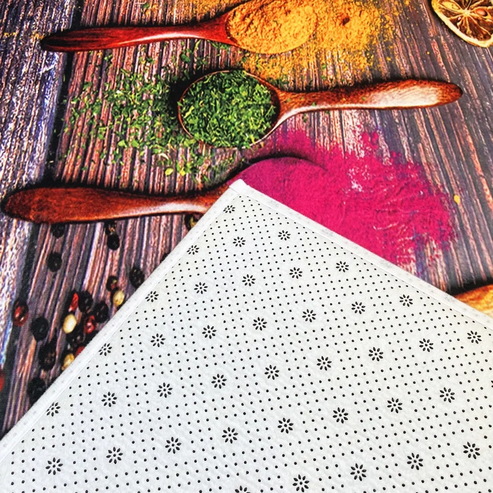 1. Мягкие и удобные, экологически чистые и дышащие, и могут непосредственно контактировать с кожей.2. Противоскользящий, пыленепроницаемый, водопоглощающий, устойчивый к истиранию, устойчивый к коррозии, устойчивый к морщинкам.3. Легко чистить, можно мыть непосредственно стиральной машиной или вручную, не выцветая.4. Рисунок продукта принимает экологически чистые печати и окрашивания, без специфического запаха, без вредных веществ.5. Область применения: кухня, дверь, прихожая, гостиная, спальня, вход, прикроватная кровать, ванная комната, балкон.