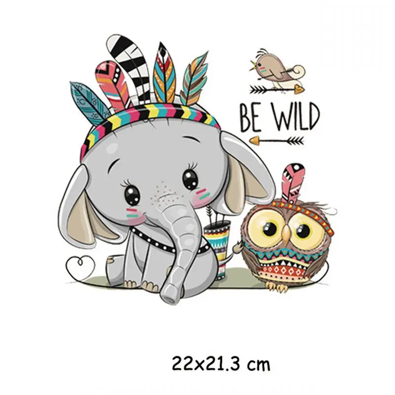 Термонаклейки на одежду, футболку, слон, Сова, животные, 22x21,3 см