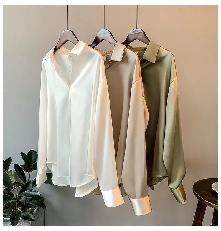 Loose Street ShirtsSatin Blouse for Women Solid Blouses