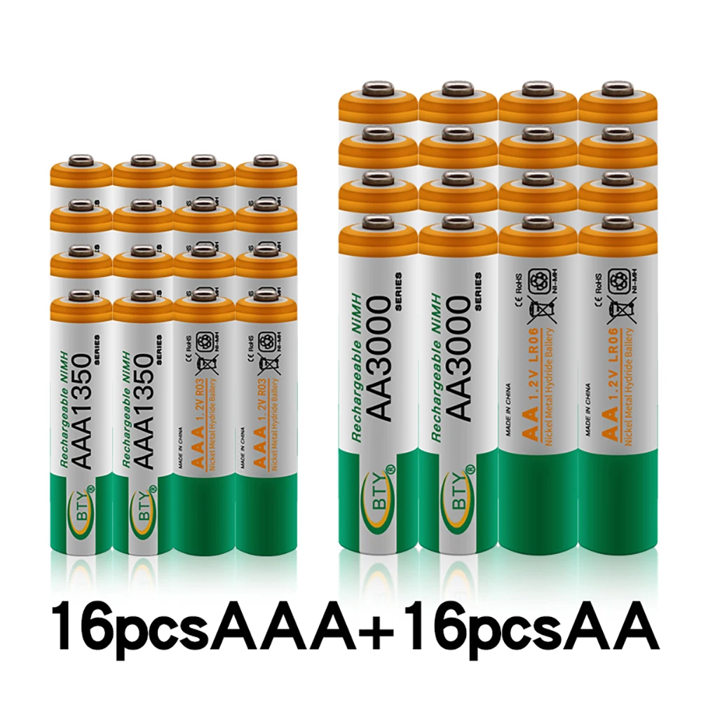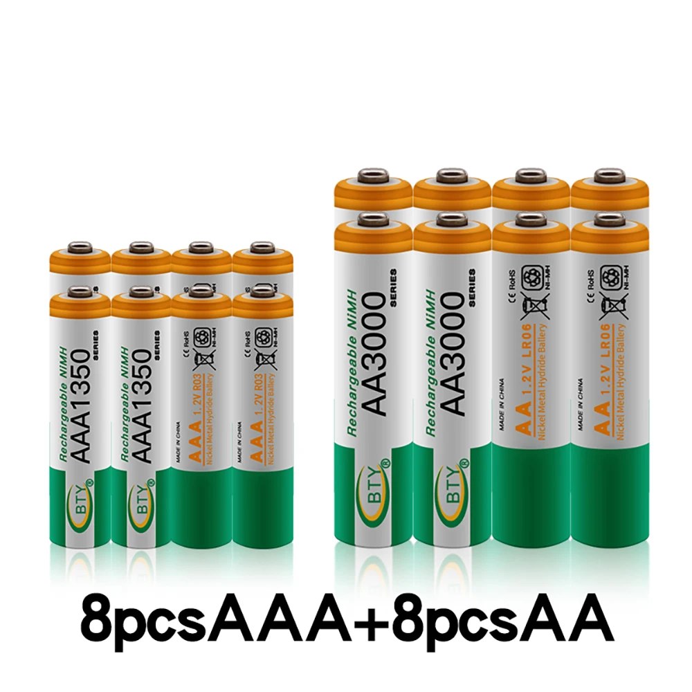 Перезаряжаемая батарея 1,2 в AA 3000 мАч Ni-MH + батарея AAA 1350 мАч перезаряжаемая батарея Ni-MH 1,2 в AAA батарея