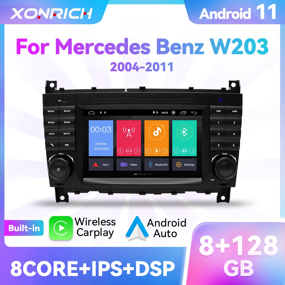 Автомагнитола Carplay, 8 ГБ, Android 11, мультимедийный плеер для MercedesBenz W203 W209 W219 A-Class A160 C-Class C200 CLK200 GPS IPS RDS