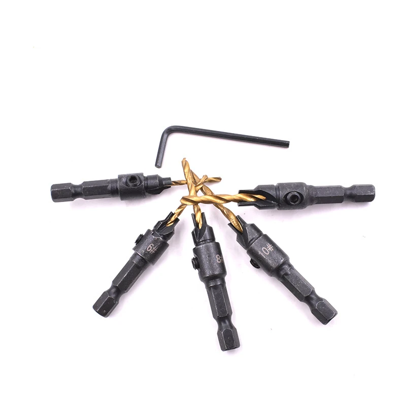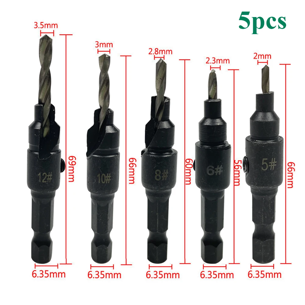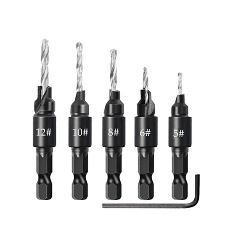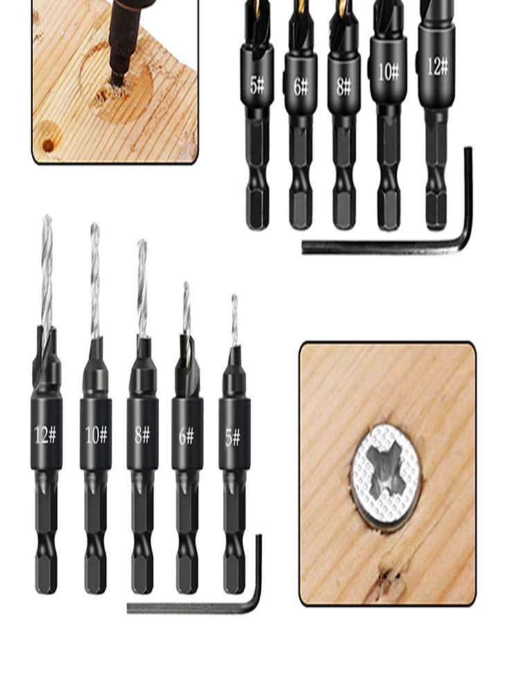 Набор сверл для зенковки, комплект из 5 насадок для сверления направляющих отверстий для винтов размером #5 #6 #8 #10 #12 с гаечным ключом