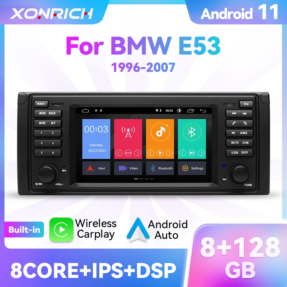 Мультимедийная магнитола Carplay для BMW, мультимедийная стерео-система на Android 11, с GPS, видеоплеером, 8 ГБ ОЗУ, 7 дюймов, Типоразмер 1 Din, для BMW 5, E39, X5, E53, M5, 1996-2003