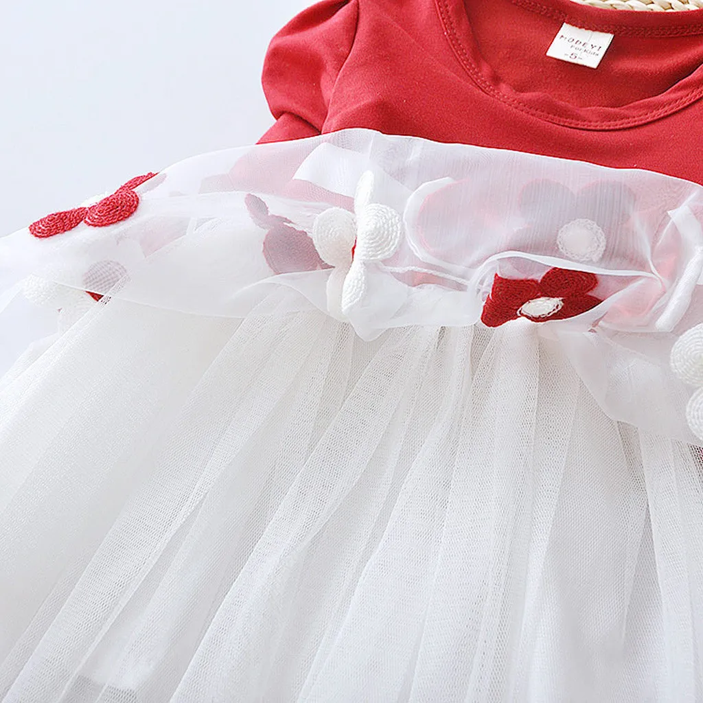 Платья для маленьких девочек с длинными рукавами из фатина с цветочным принтом и бантом