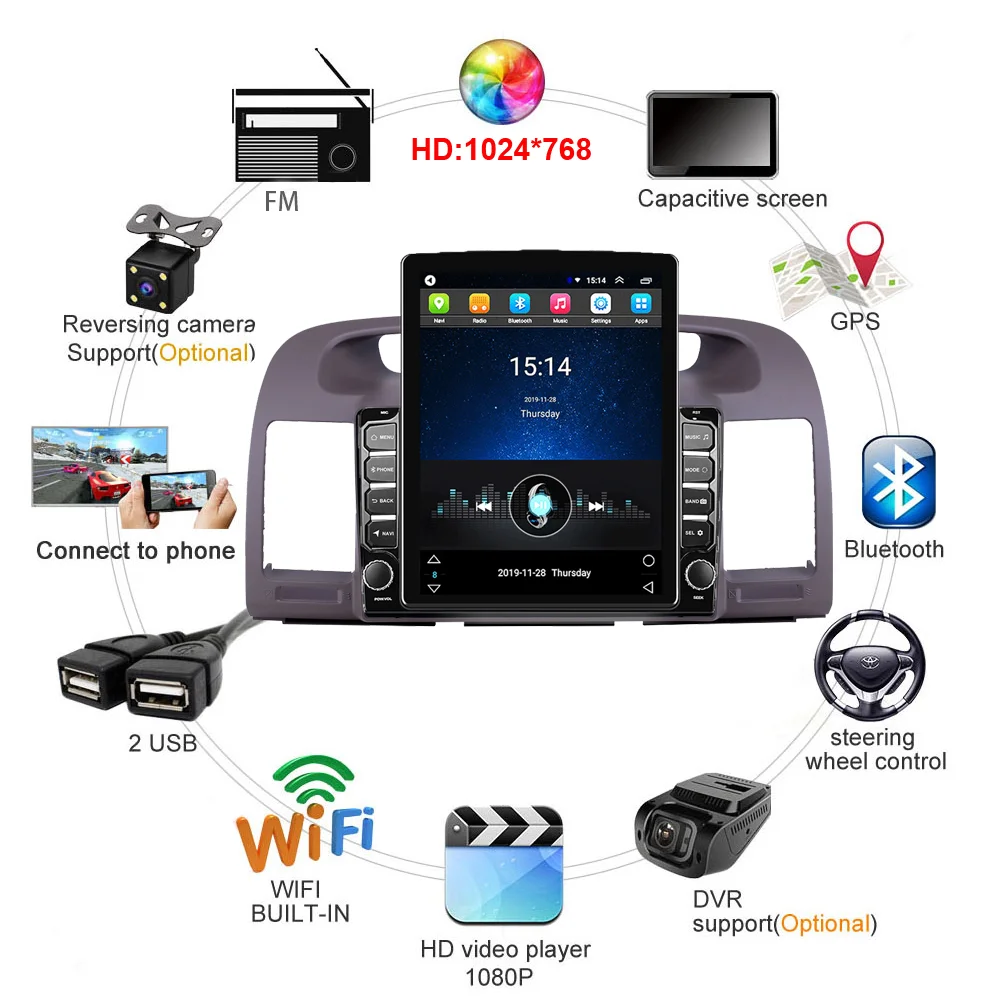Автомобильный мультимедийный плеер Tesla, для Toyota Camry 5 XV 30 2001-2006, 9,7 дюйма, GPS-навигатор, 4G Carplay, Android, Авторадио, стерео