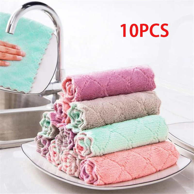 5 шт., двухслойная впитывающая ткань из микрофибры для мытья посуды