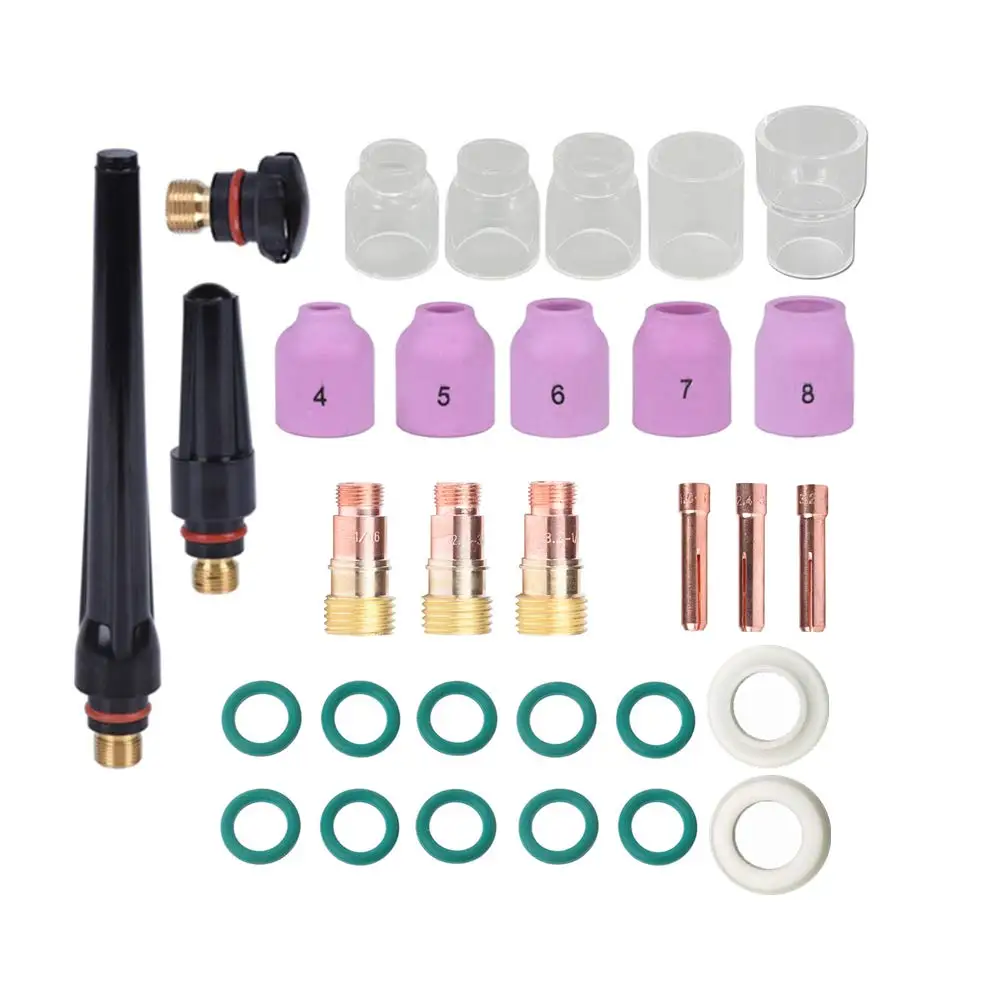 Газовые линзы #12, пирекс стеклянная чашка, трубки для горелки Tig, практичные аксессуары, комплект сварочных горелок, аргоновый дуговой инструмент для горелки TIG WP171826, 31 шт.