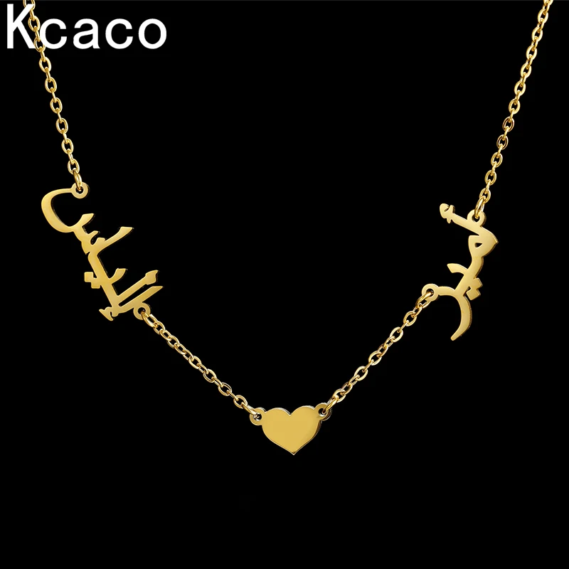 Мужские ювелирные изделия из нержавеющей стали, ожерелье с 2 арабскими именами и сердцем, позолоченная цепочка-чокер с надписью, подарок для женщин