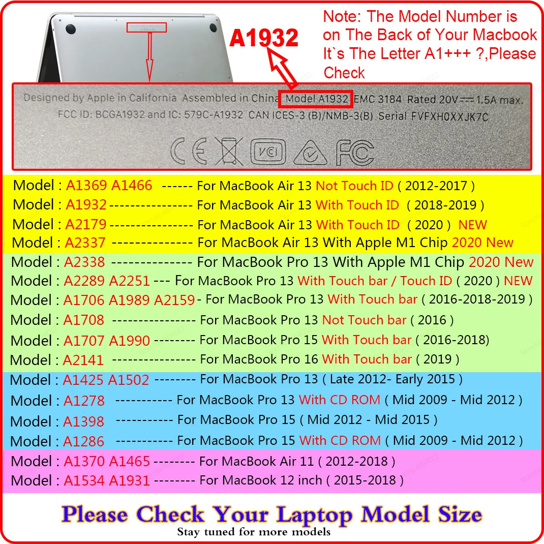 Чехол для ноутбука MacBook Touch ID Air 13 A1932 Air Pro Retina 11 ...
