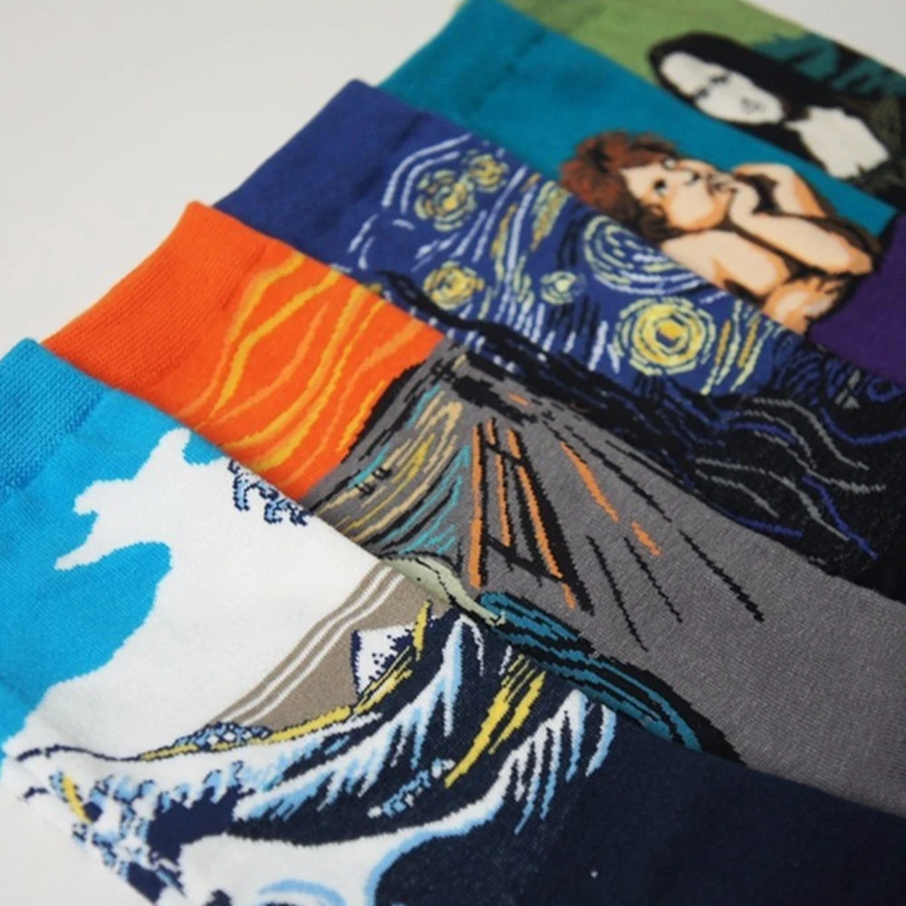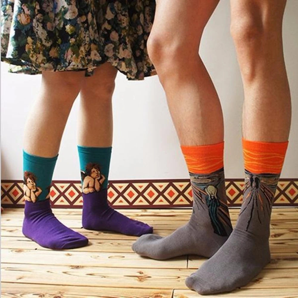 23 стиля Новинка Забавный принт носки унисекс модные хлопковые Мультяшные картины маслом Мона Лиза беговые уличные спортивные женские носки