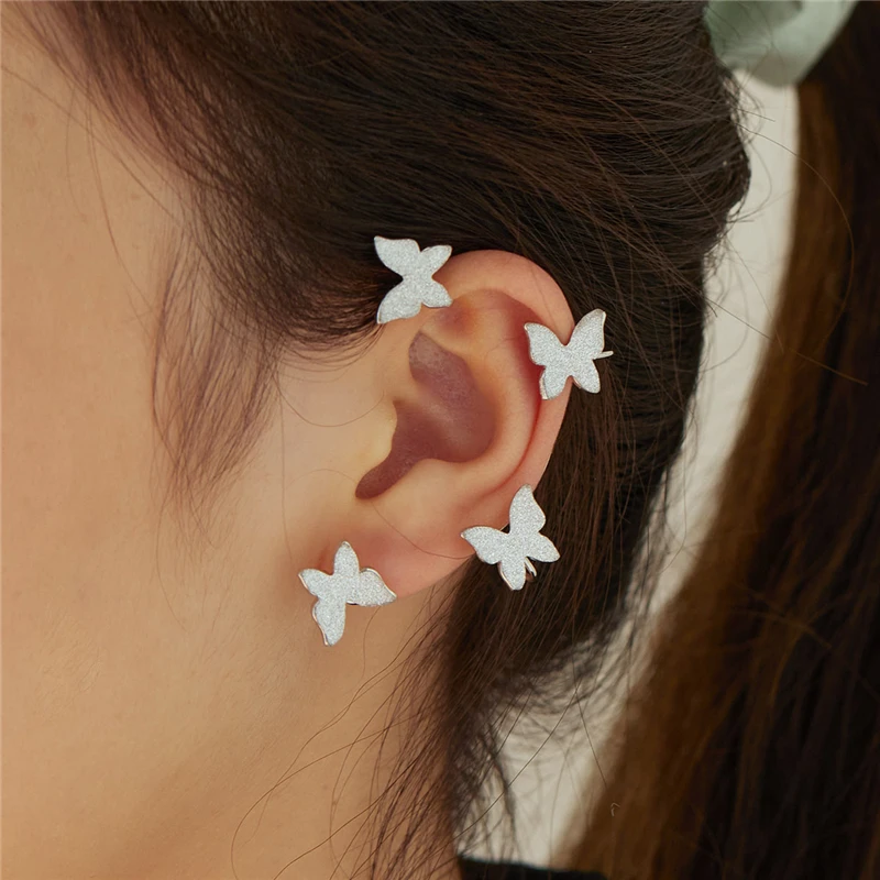 Новые посеребренные металлические клипсы-бабочки для ушей без пирсинга для женщин, сверкающие циркониевые клипсы для ушей, серьги-каффы, свадебные украшения