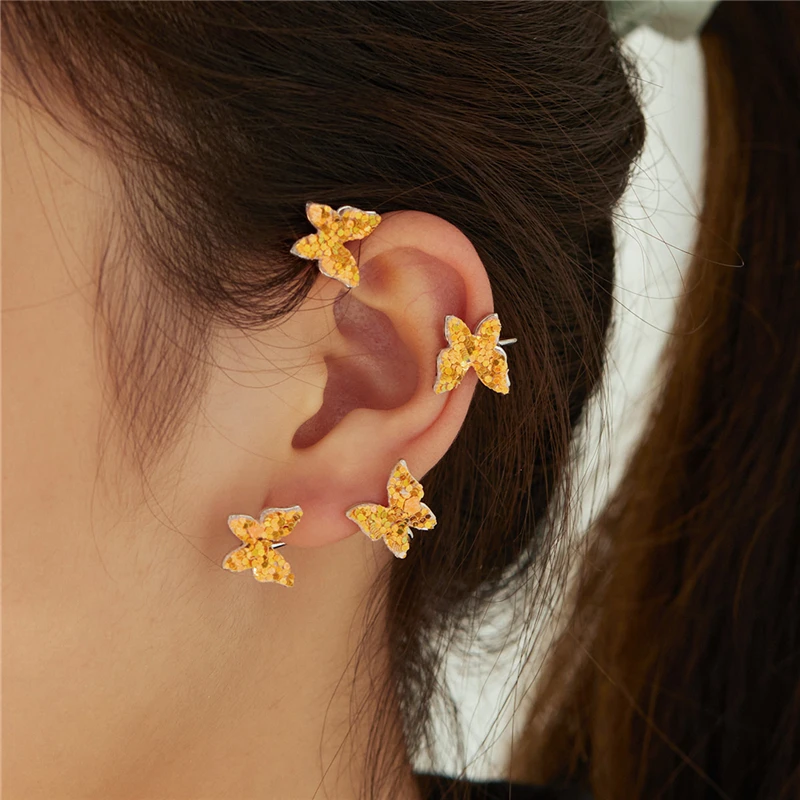 Серьги-клипсы для женщин в форме бабочки, Модные Позолоченные метал...
