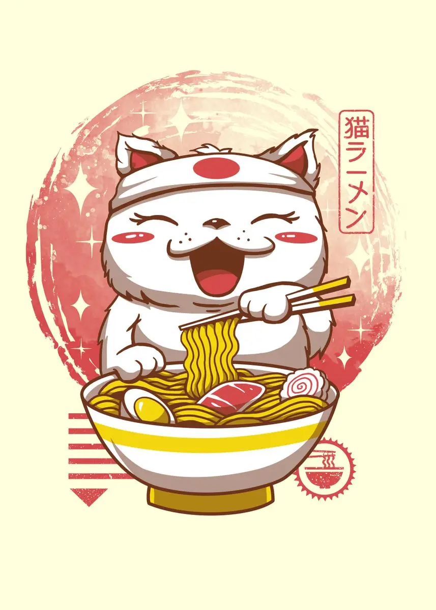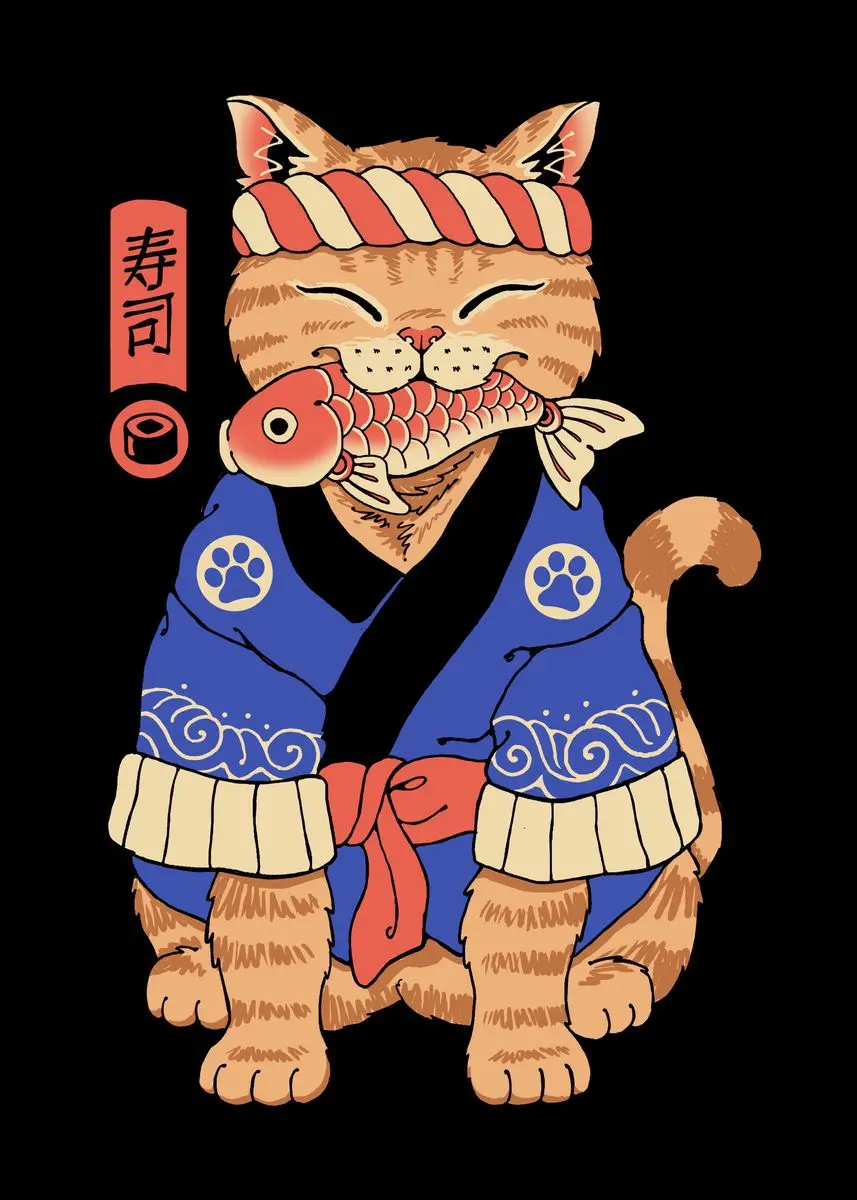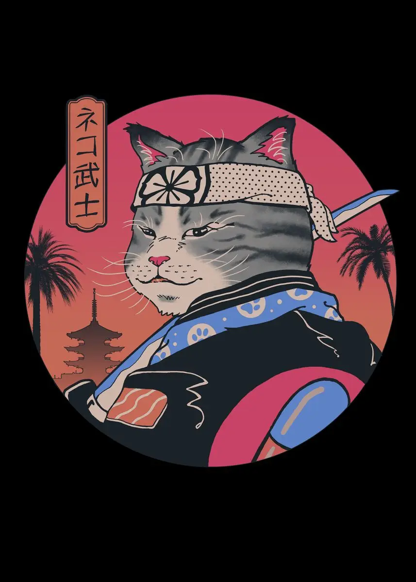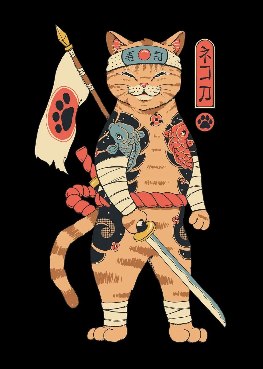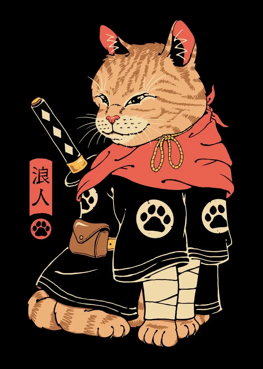 Японская кошка-Самурай, рамен, ностальгия, домашний декор, художест...