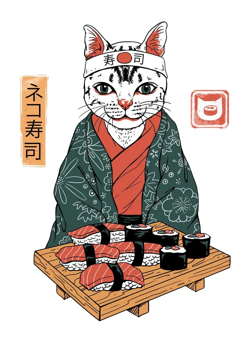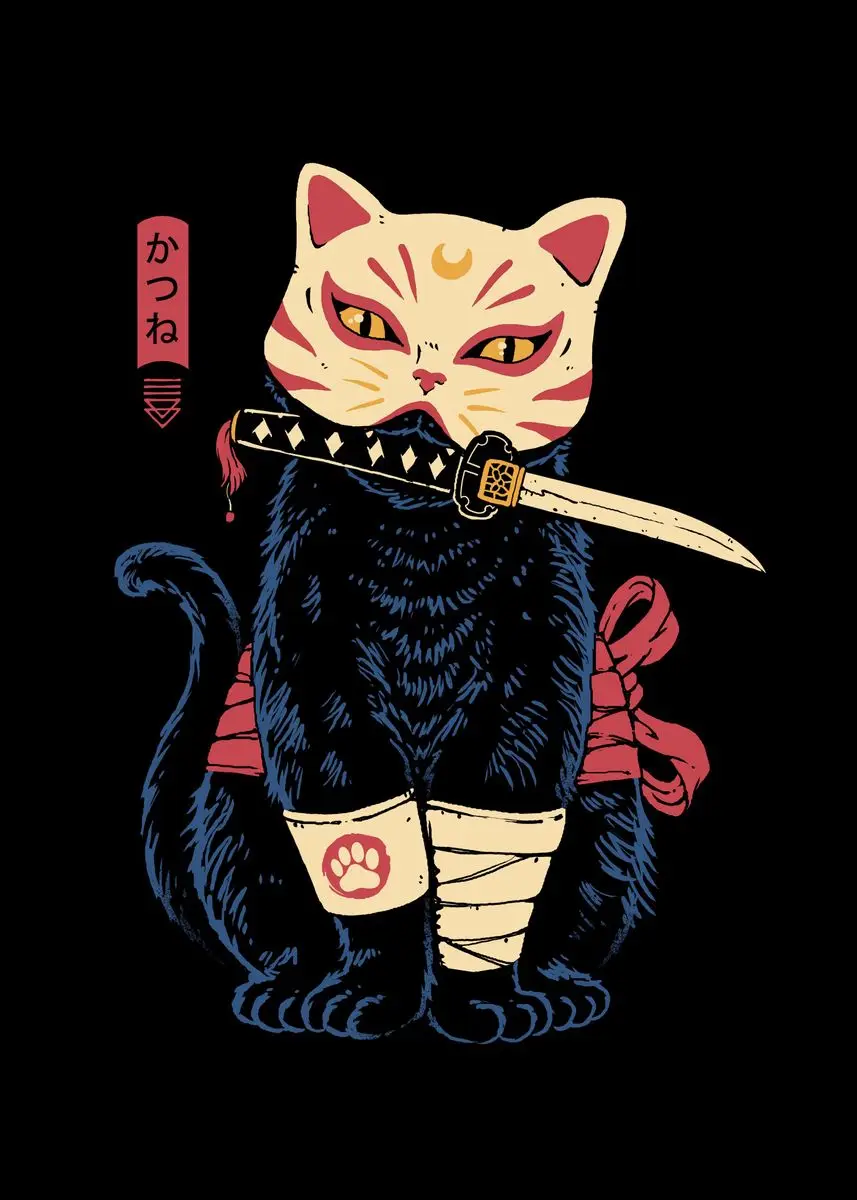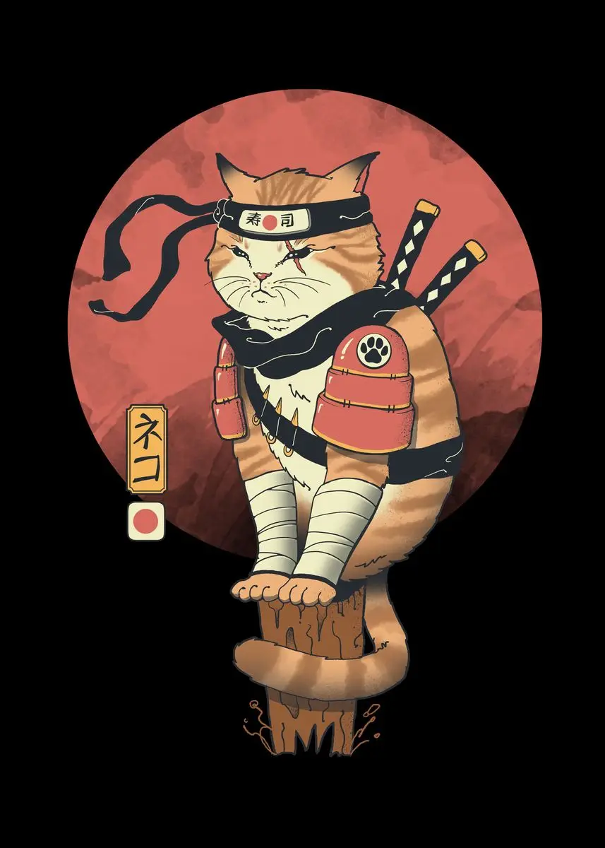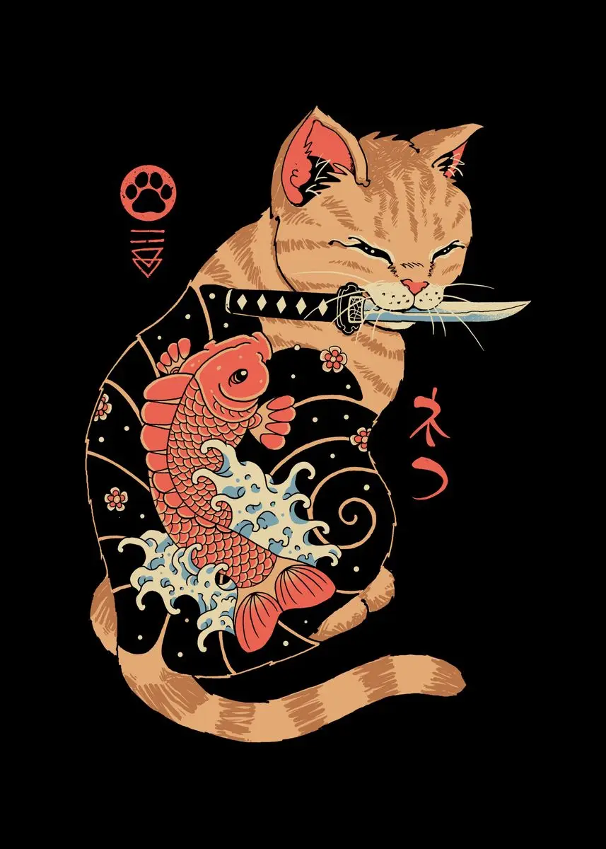 Японская кошка-Самурай, рамен, ностальгия, домашний декор, художест...