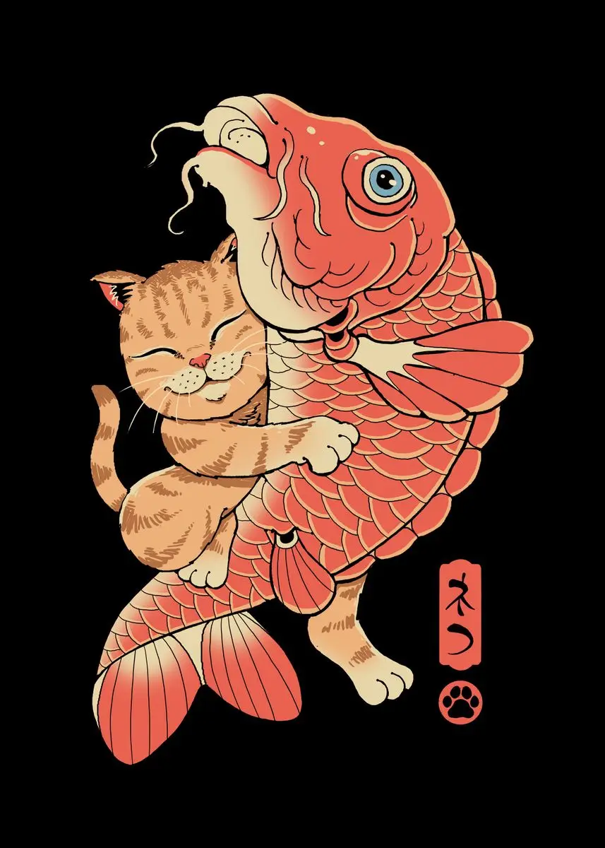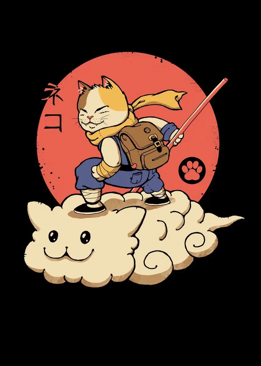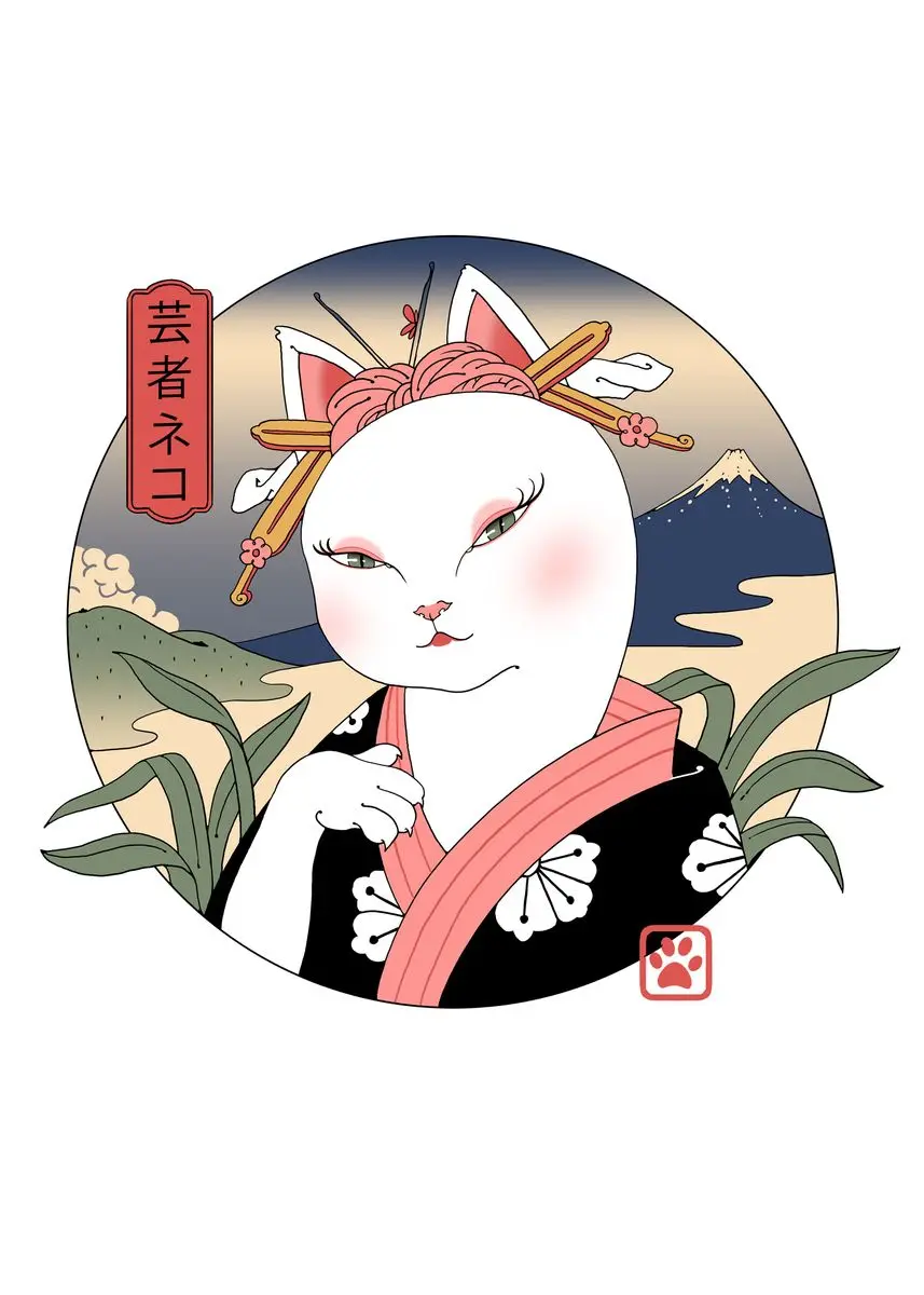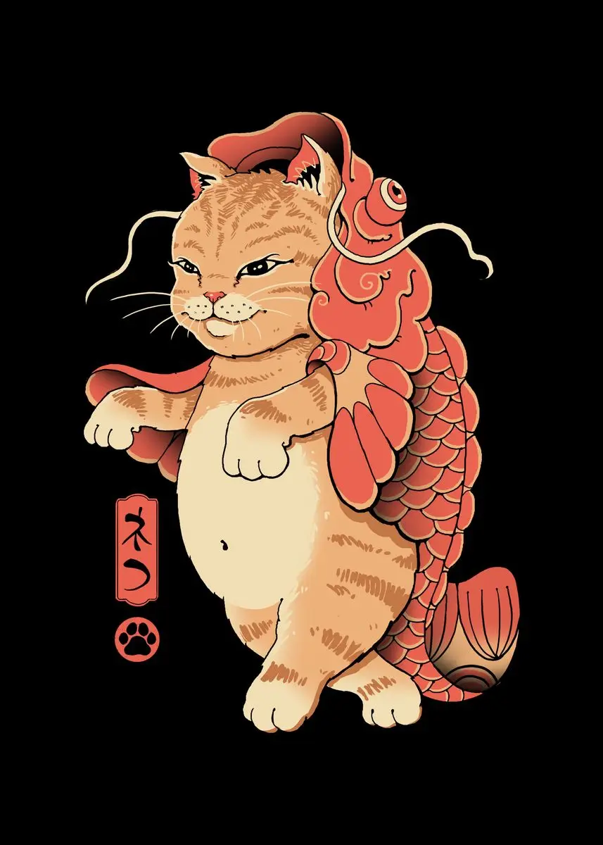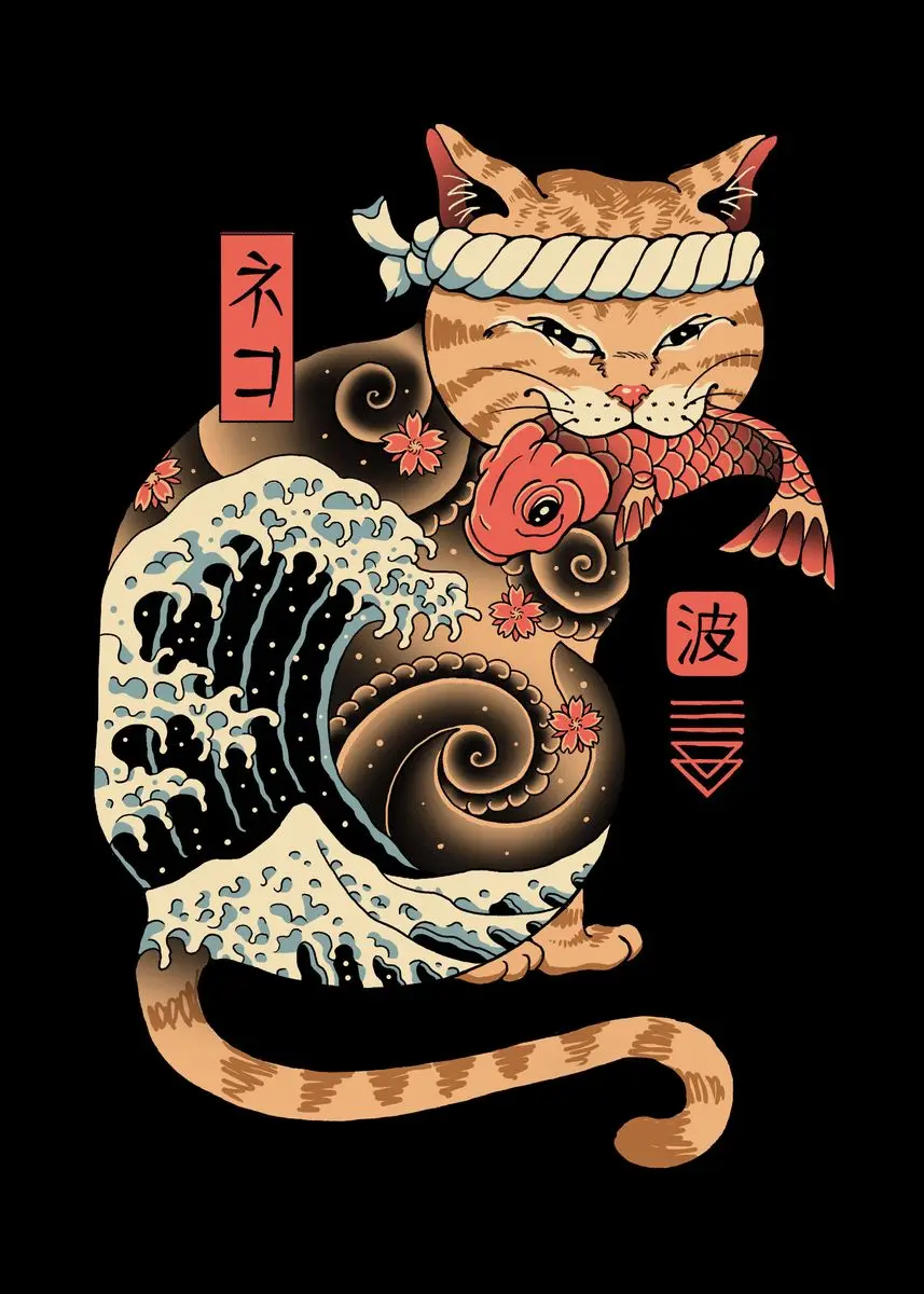 Японская кошка-Самурай, рамен, ностальгия, домашний декор, художест...