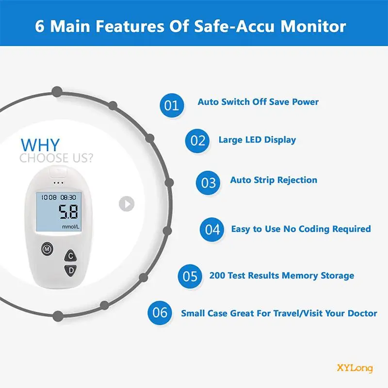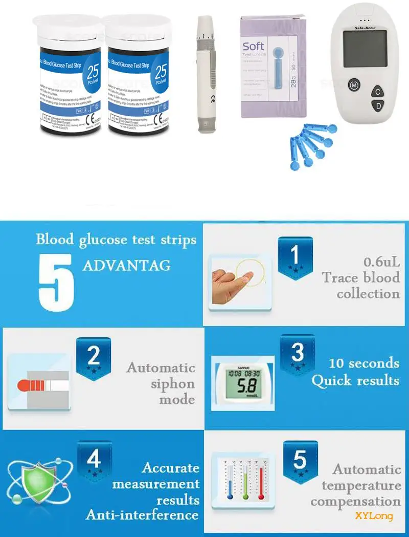 Safe-Accu CE глюкометр для измерения уровня глюкозы в крови комплек...