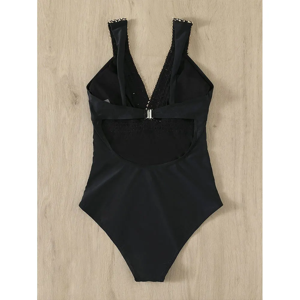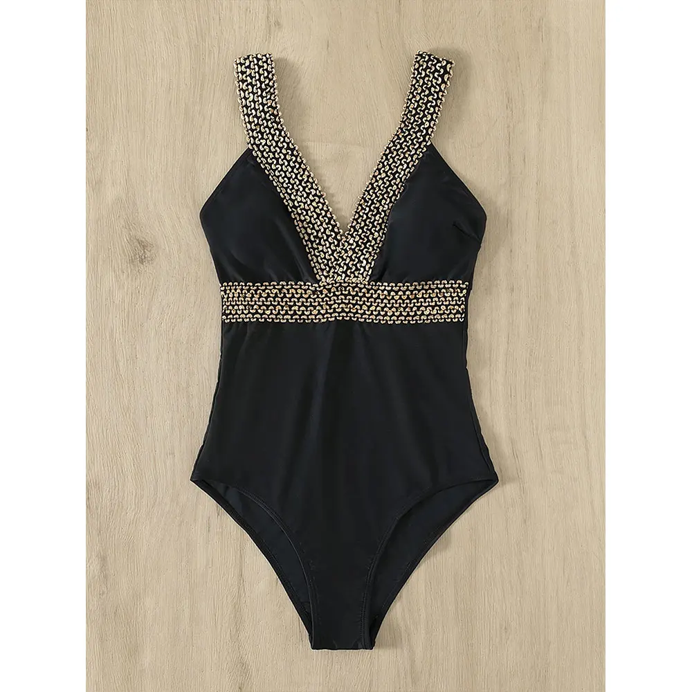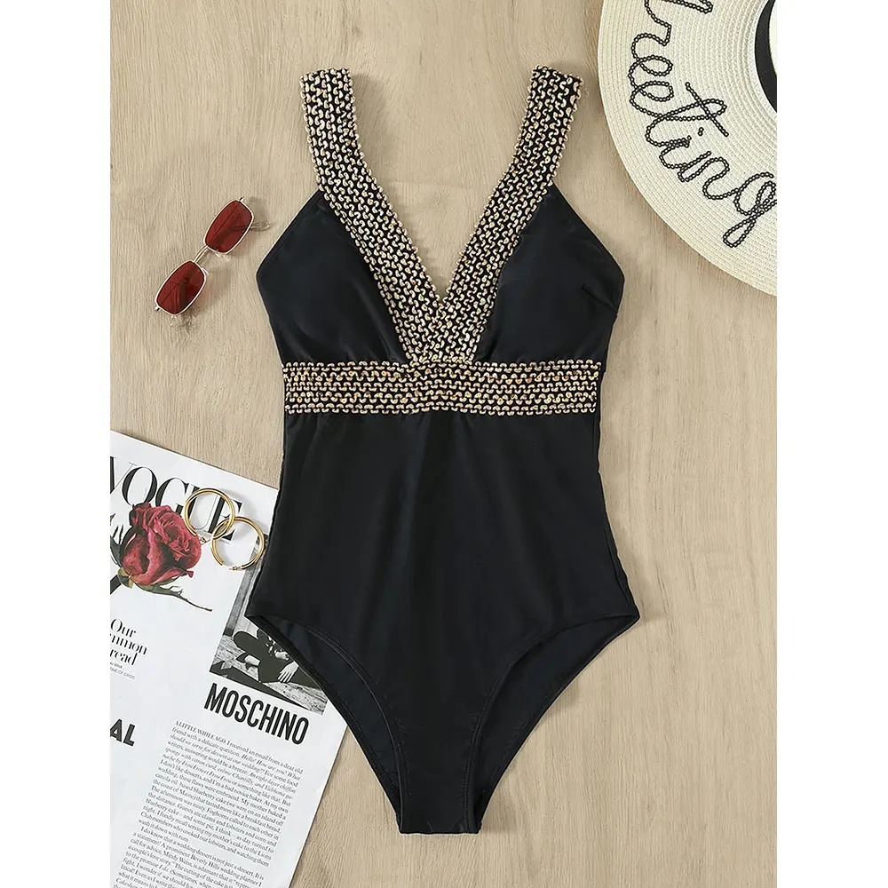 Женский контрастный слитный купальник с V-образным вырезом, пикантный монокини с широкими бретельками, купальный костюм с завышенной талией, пляжная одежда