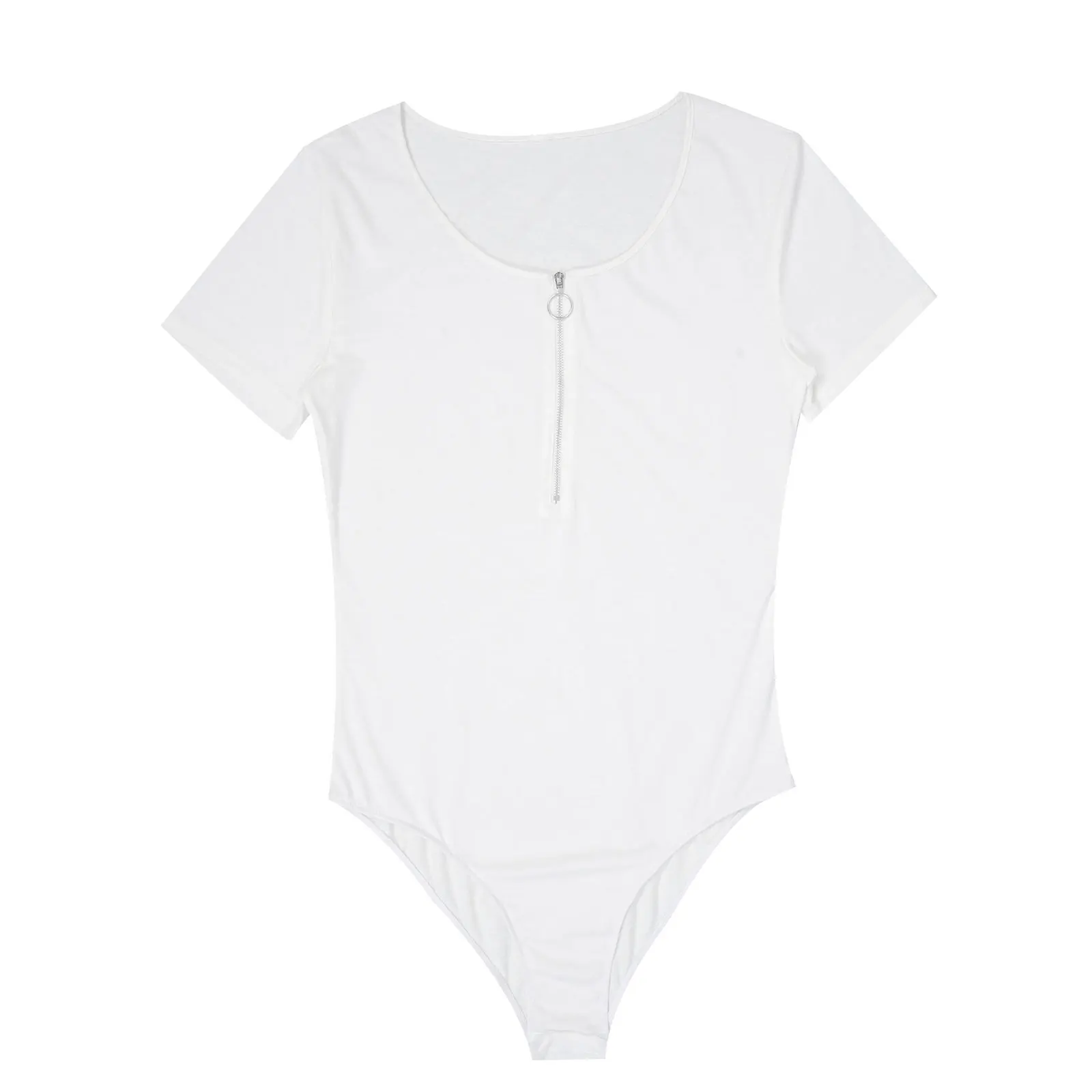 Мужской боди с короткими рукавами и застежкой-молнией спереди, трико, Повседневная Однотонная футболка с пуговицами и шаговым швом.
