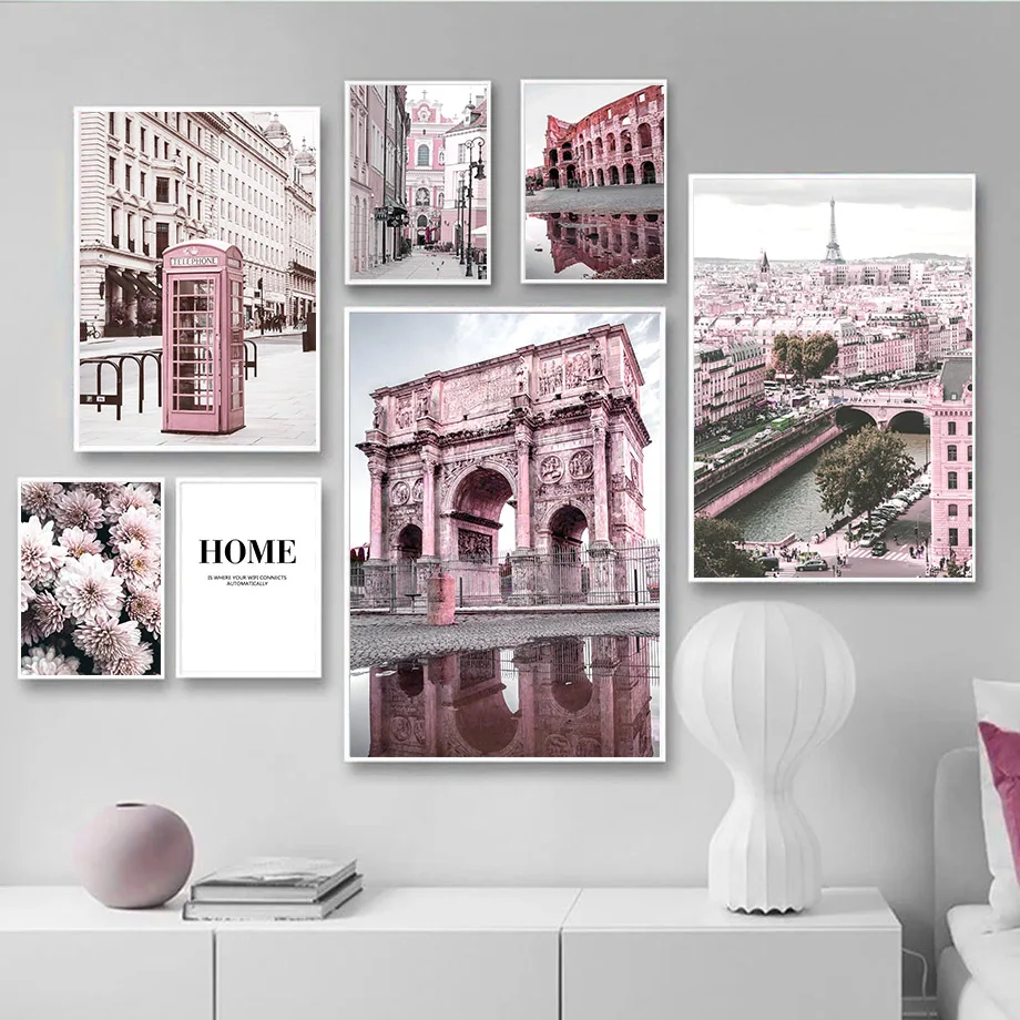 Архитектурная городская уличная телефонная будка с цветами, настенная Картина на холсте, постеры и принты в скандинавском стиле, настенные картины для гостиной