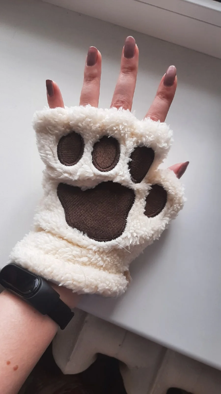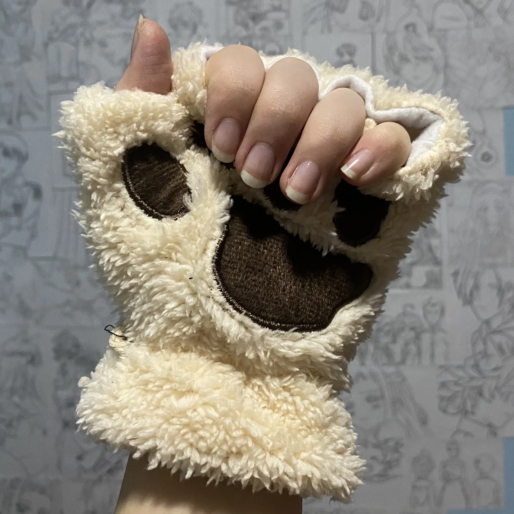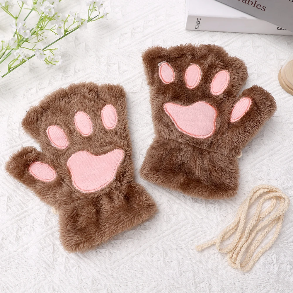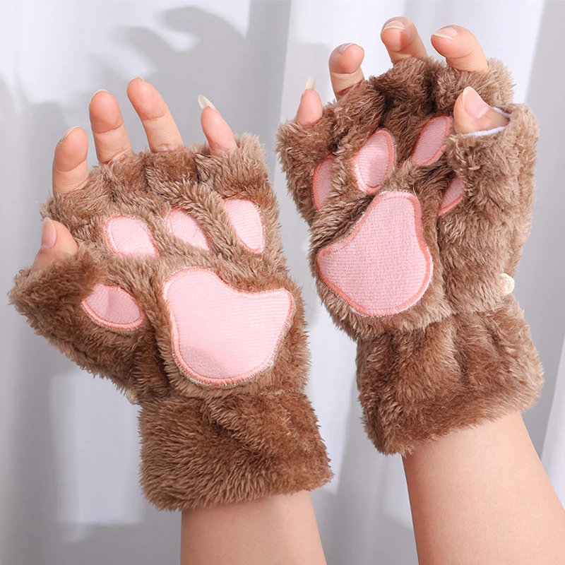 Женские милые искусственные плюшевые варежки, теплые мягкие плюшевые короткие безпальцевые пушистые перчатки в виде медведя, кота, костюм, наполовину закрывающие пальцы, подарок вечерние ринку