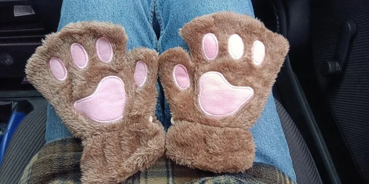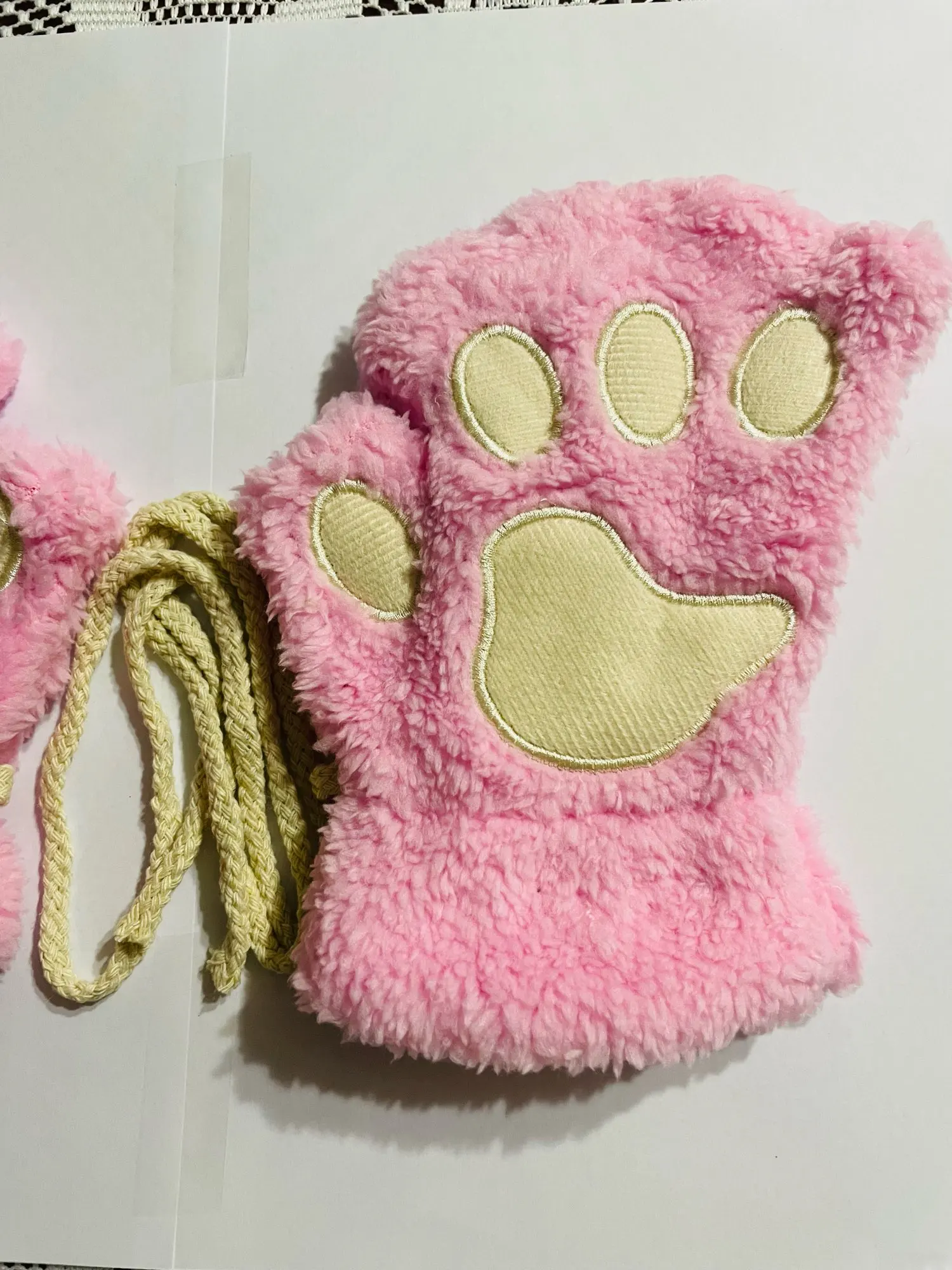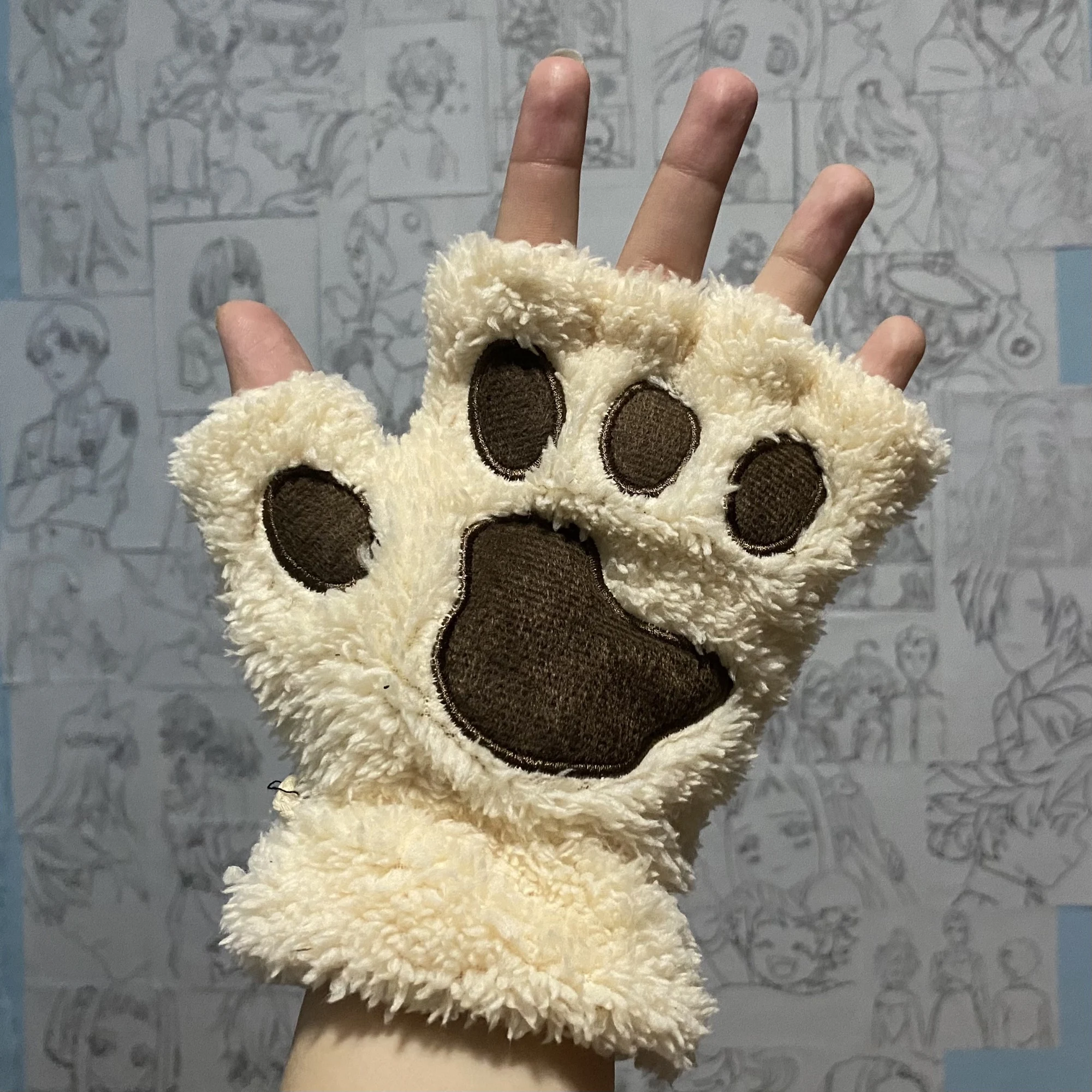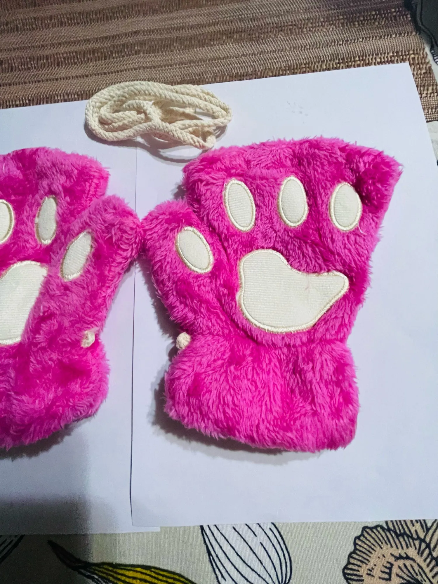 Женские милые искусственные плюшевые варежки, теплые мягкие плюшевые короткие безпальцевые пушистые перчатки в виде медведя, кота, костюм, наполовину закрывающие пальцы, подарок вечерние ринку