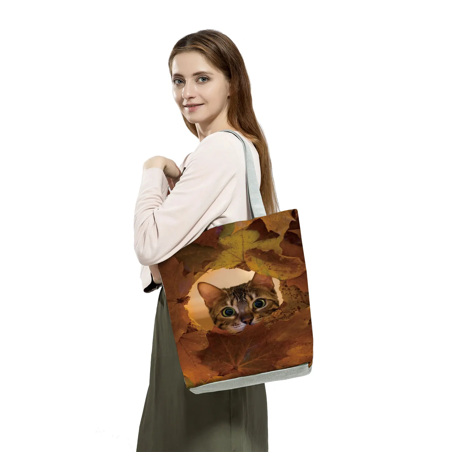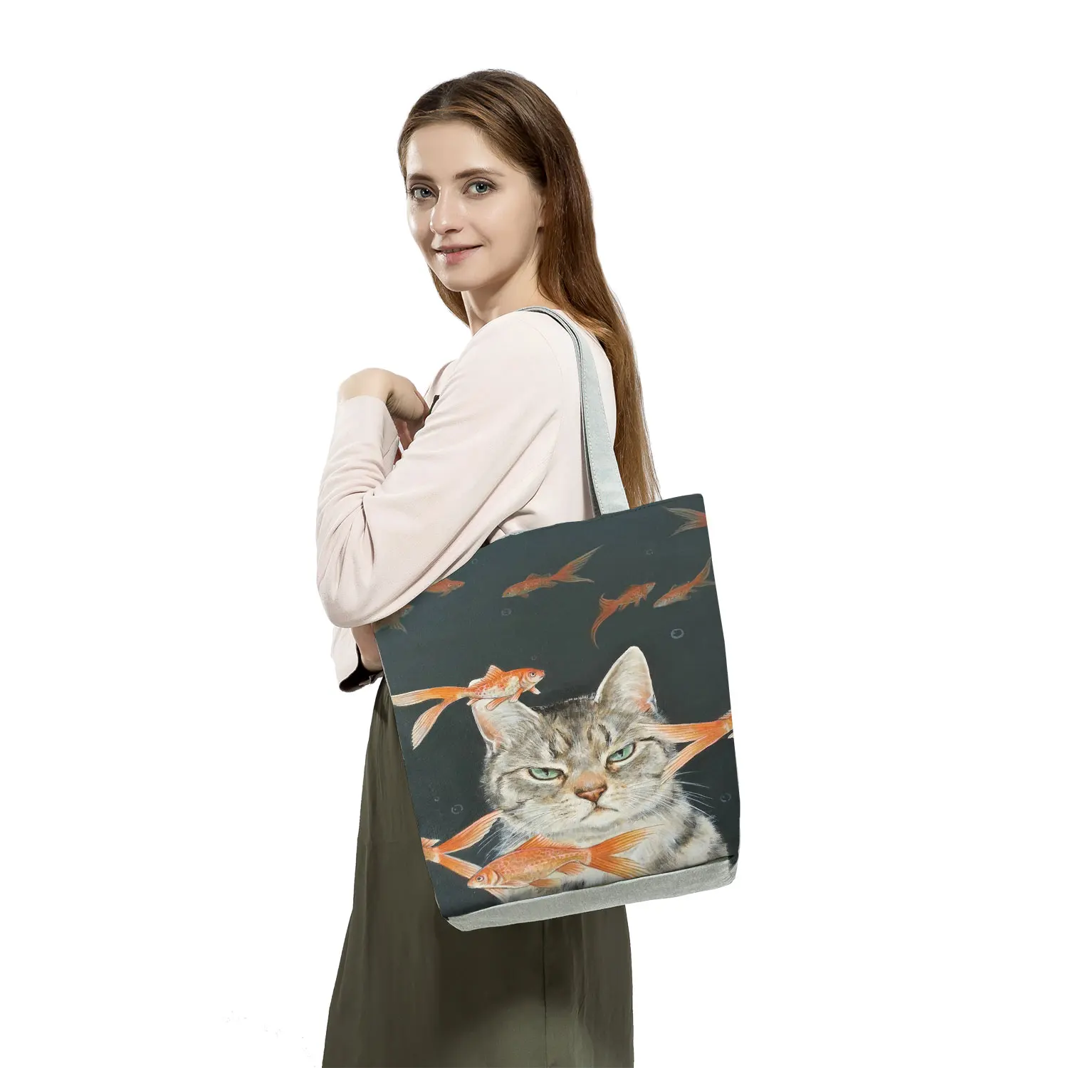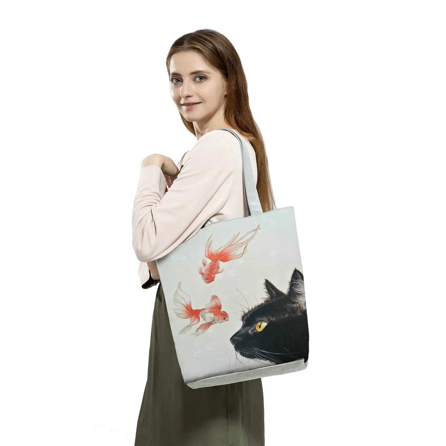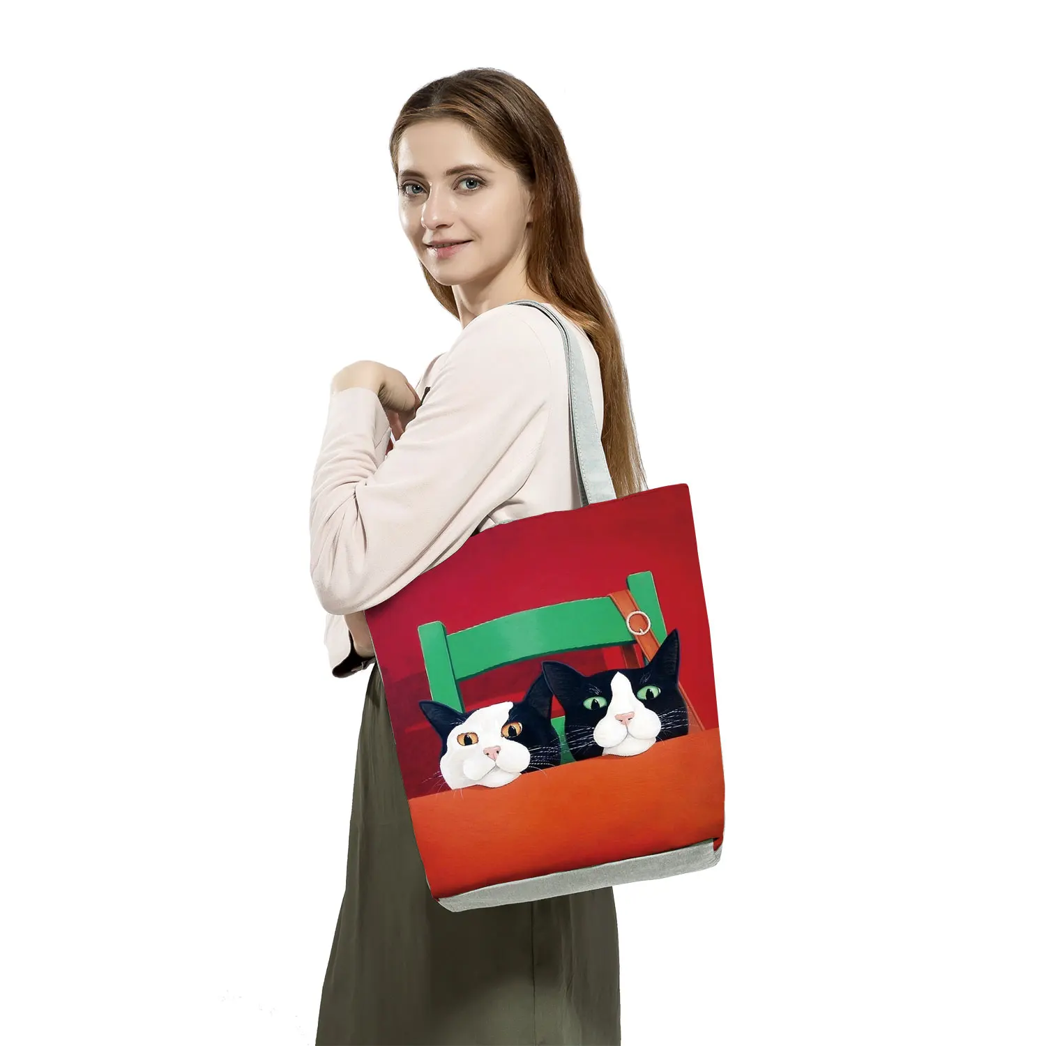 Креативные сумки для покупок с принтом кошки, вместительные женские сумки-тоуты, дизайнерская сумка на плечо в японском стиле, пляжные дорожные сумки