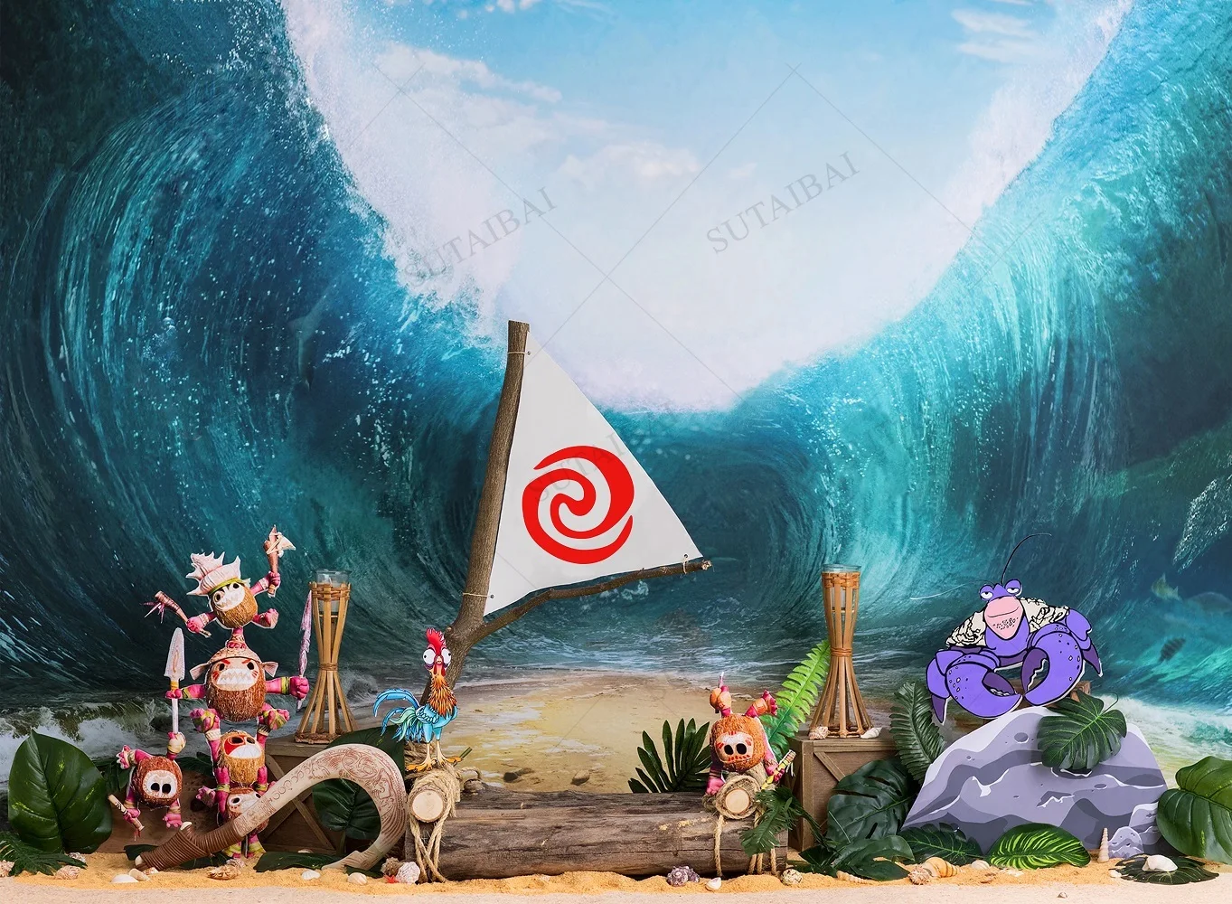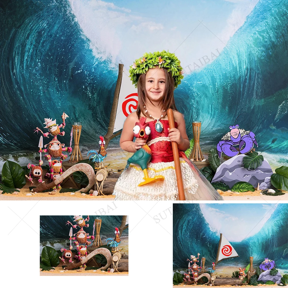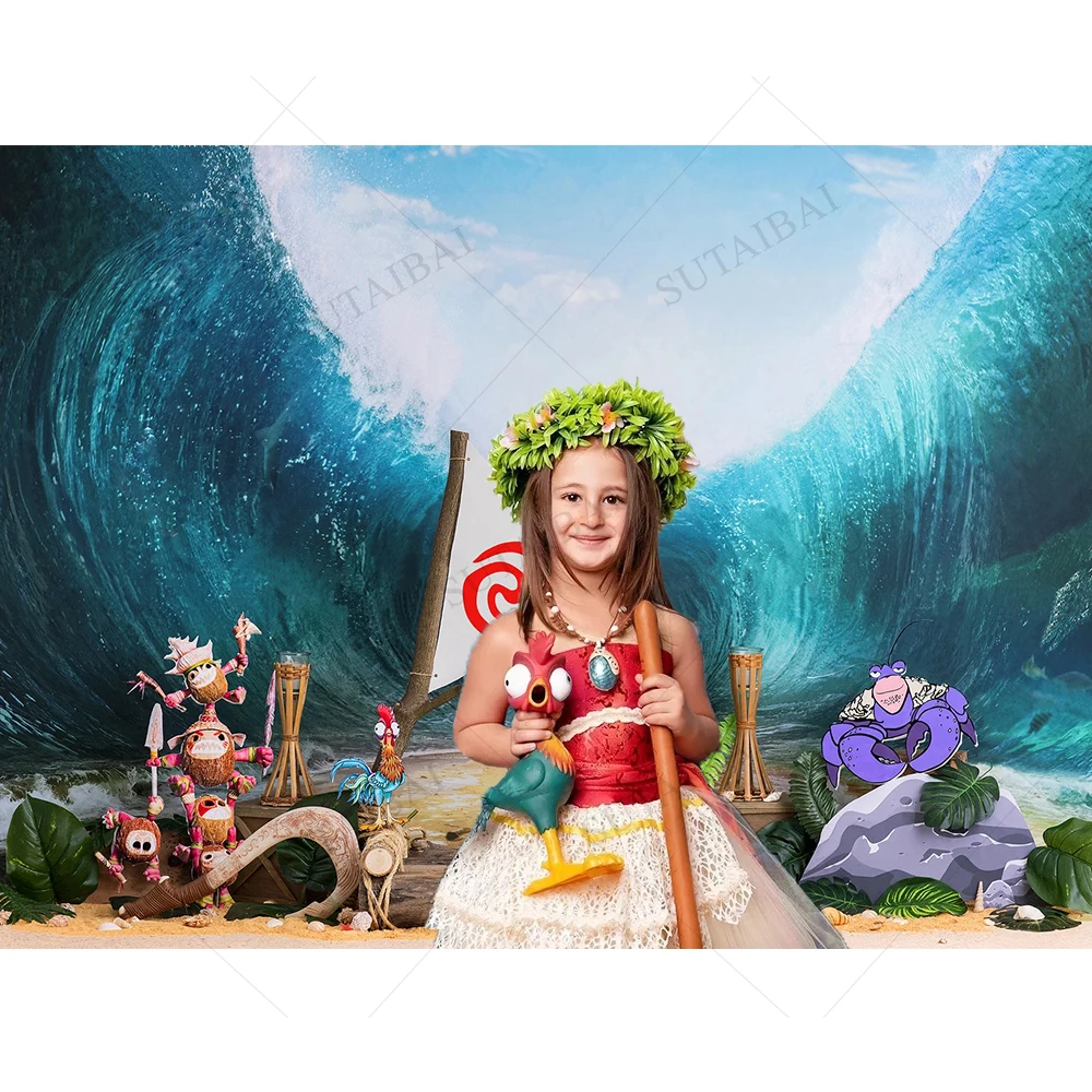 Детский полинезийский фон для фотосъемки с изображением принцессы для первого дня рождения девочки баннер Моана для студийной съемки