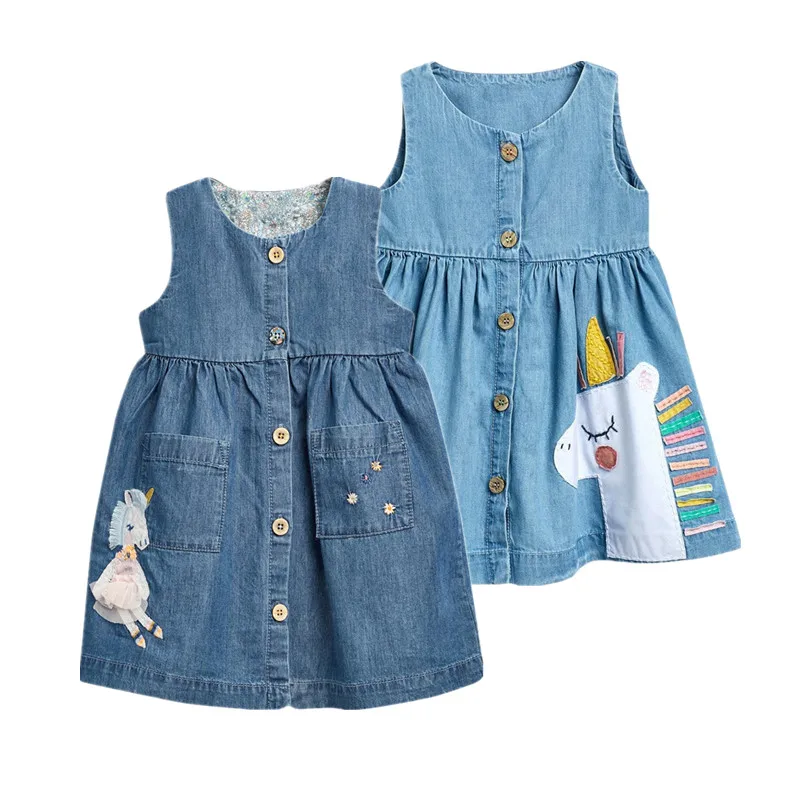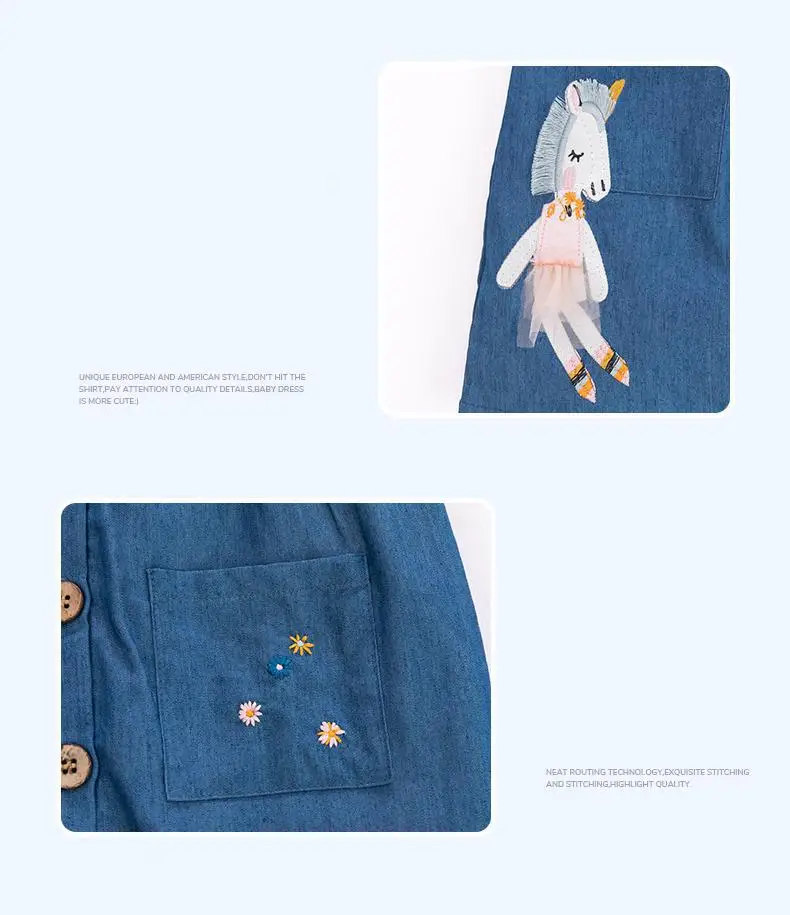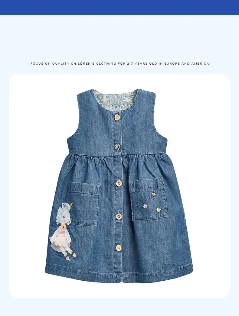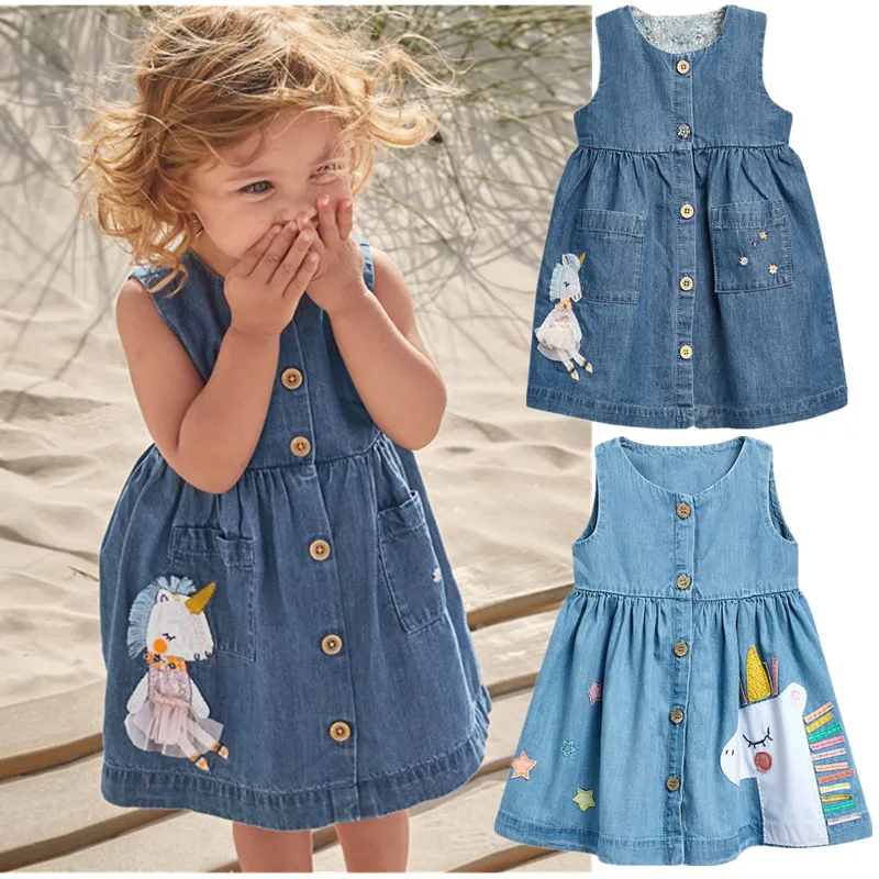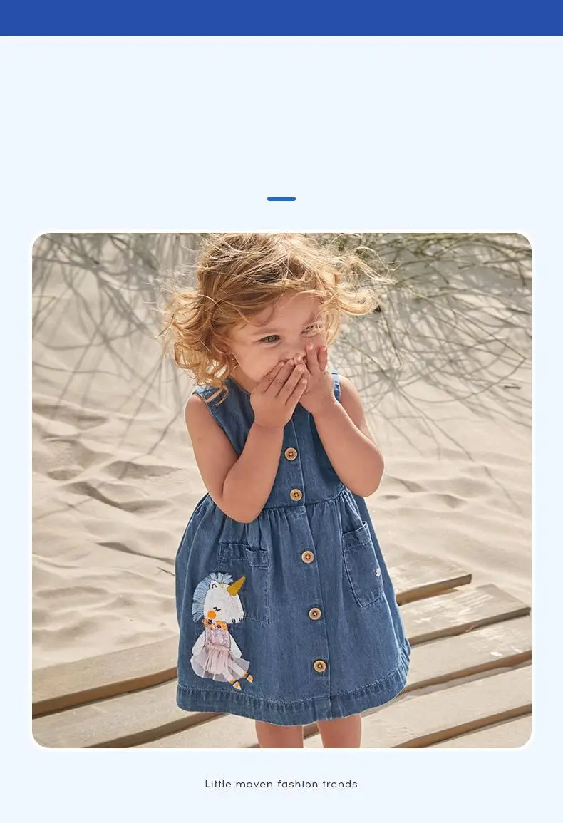 Летняя детская одежда для девочек в европейском и американском стиле; Джинсовое платье с рисунком для девочек; Новинка 2022 года; Милая хлопковая детская одежда