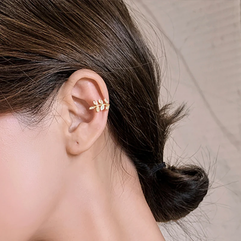 Новые клипсы для ушей без пирсинга с хрустальными листьями, клипсы ...