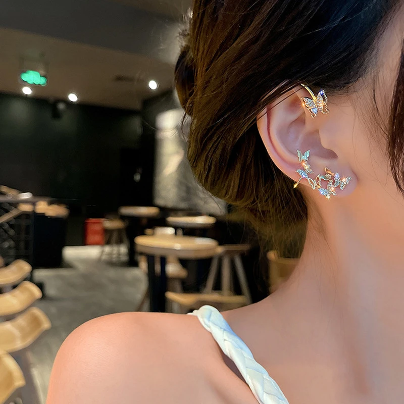 Серьги-бабочки серебристого цвета с кристаллами, 1 шт., клипсы для ушей, манжеты для ушей для женщин, серьги без пирсинга, ювелирные изделия для вечерние Ринок, подарки