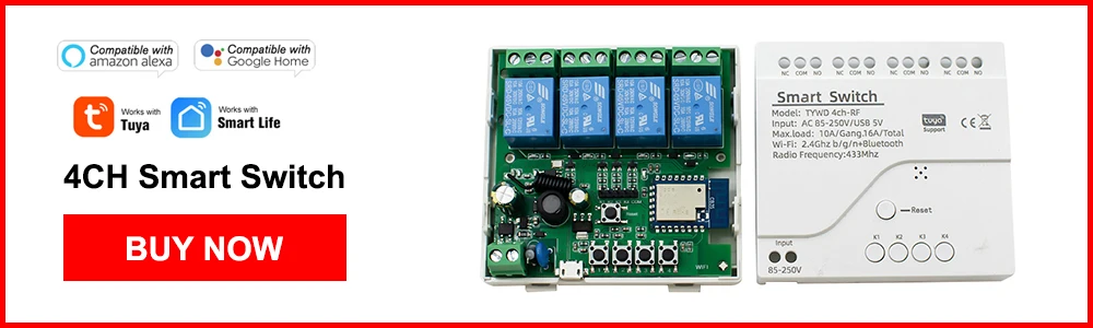 [Управление приложением]Просто нажмите на приложение tuya smart life, чтобы включить светильник в любое время и в любом месте. Освещенный дом ожидает вашего прибытия[Таймер и расписание]Настройка графиков времени, чтобы сэкономить на переготовке блюда[Голосовое управление без рук]Совместим с Alexa и Google Home, умный переключатель позволяет управлять светом вкл/выкл с вашим голосом[Share Control]Поделитесь контролем вашей бытовой техники с семьей или друзьями, чтобы они могли управлять устройствами удаленно[2 режима работы]1. Самоблокировка: каждый канал может быть включен/выключен отдельно. Вы можете включить/выключить все каналы одновременно.2. Автофиксацией/шаговым управлением режим: Включите один канал, канал автоматически закроется после 0,5 секунд. Другой канал такой же, как и канал.[Сделайте вашу дверь гаража умной]Примечание перед заказом, пожалуйста, проверьте совместимость-Пожалуйста, проверьте, совместим ли ваш контроллер гаража с нашим модулем.-Вы можете использовать плоскогубцы для короткого замыкания настенной кнопки на открывателе. Если дверь гаража открывается или закрывается, она может работать с нашим умным контроллером.