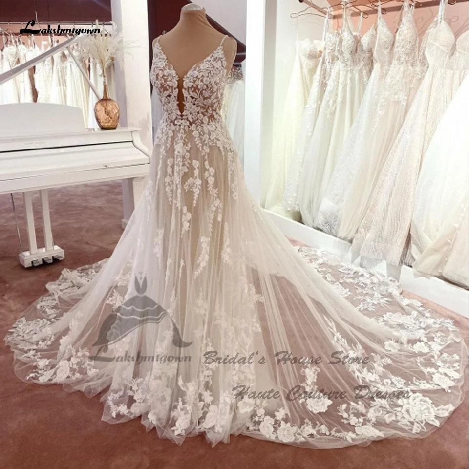 Lakshmigown платье принцессы кружевное свадебное платье сексуальный Свадебный халат 2022 Глубокий V-образный вырез цвета шампанского Тюль с открытой спиной