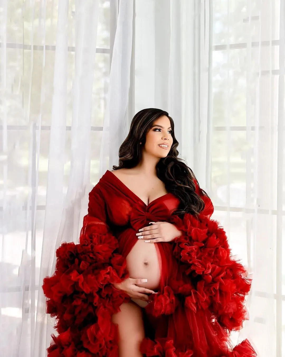 Новинка 2022, красное Тюлевое платье для невесты и беременных для фотосессии, платья для беременных, тюлевые платья для беременных женщин на заказ