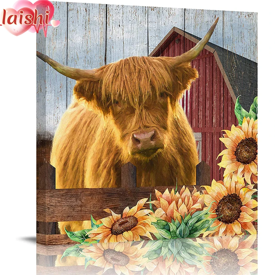 Набор для алмазной живописи, набор объемных картин 5D с изображением воздушного шотландского горца, коровы, фермы, пейзажа, хобби, полное сверление, квадратная и круглая мозаика, украшение для дома