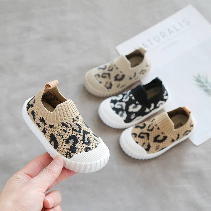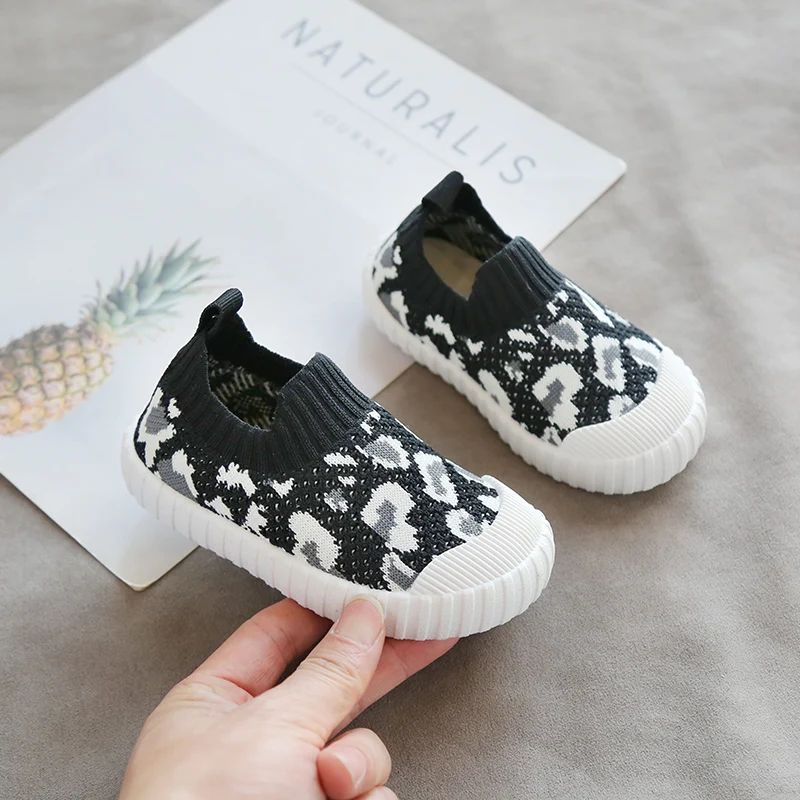 Кроссовки детские вязаные с леопардовым принтом, на мягкой нескользящей подошве, SCZ002