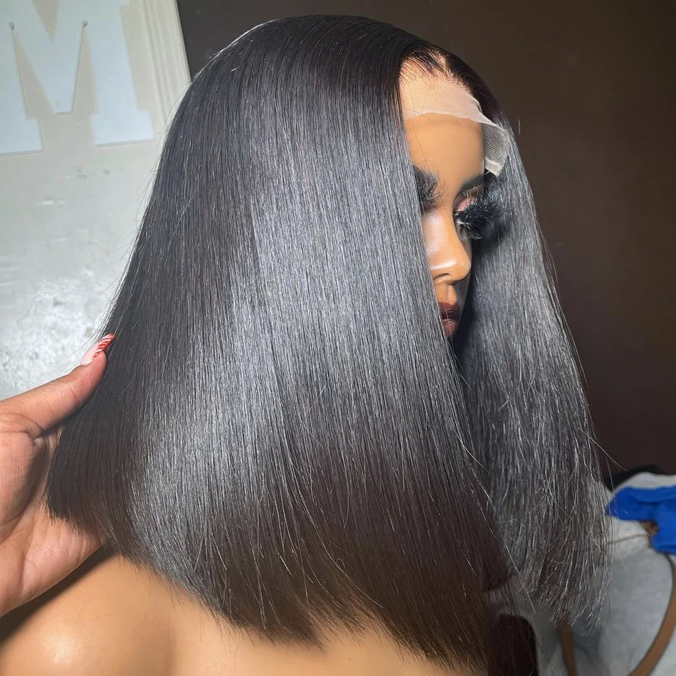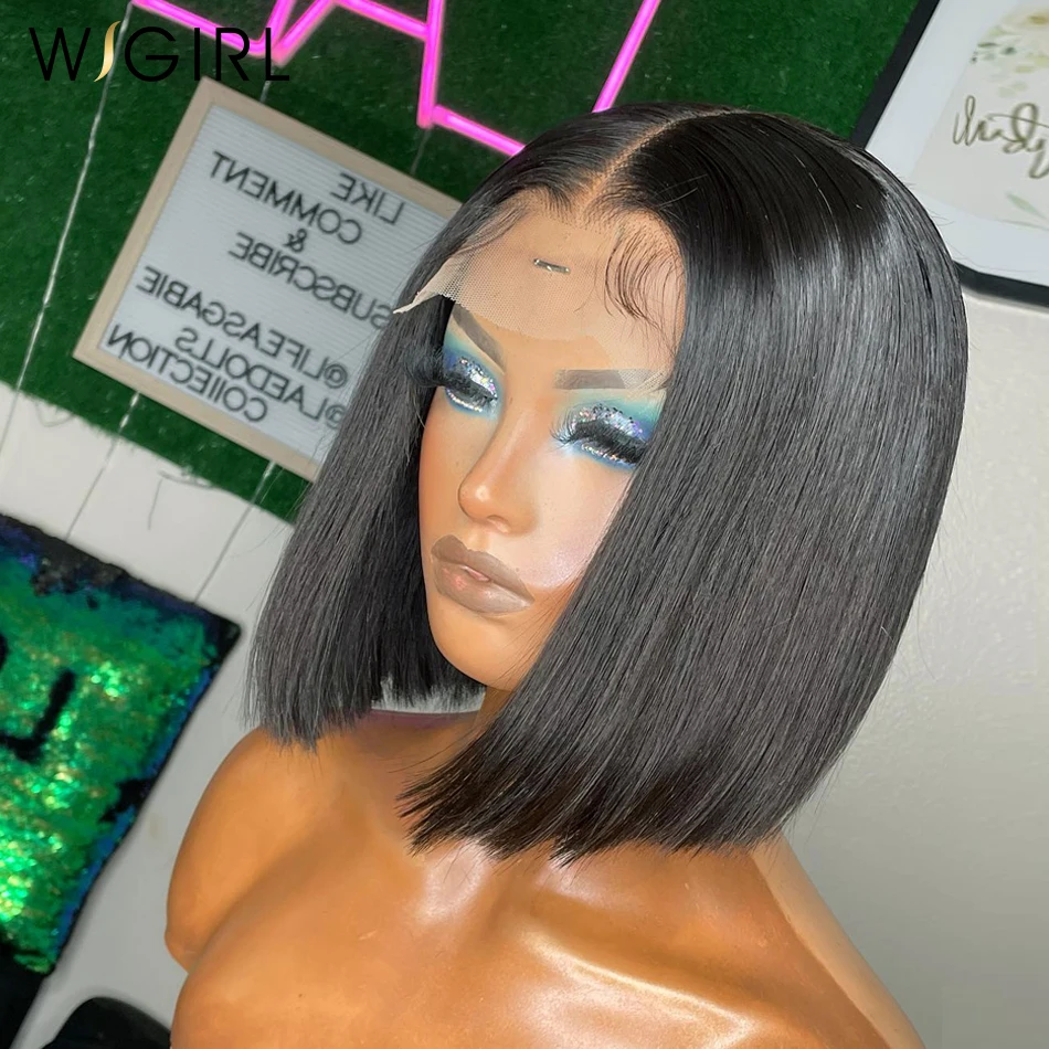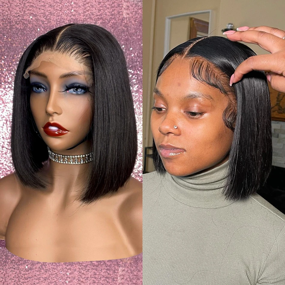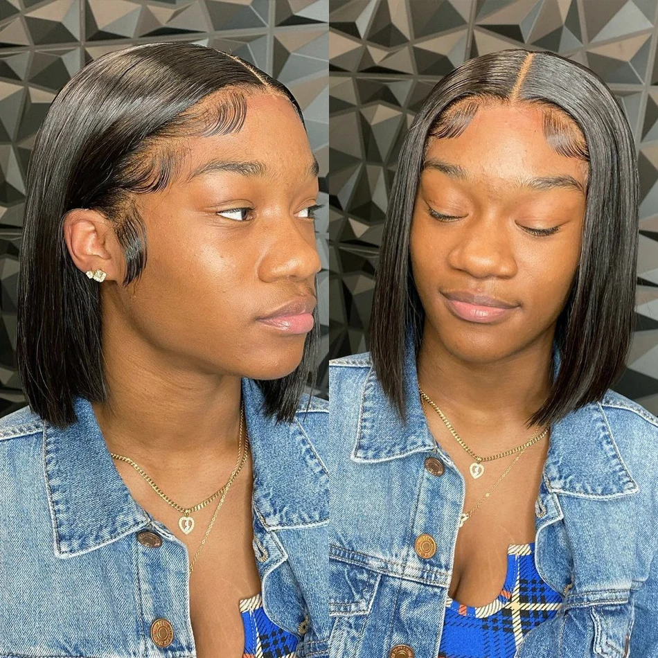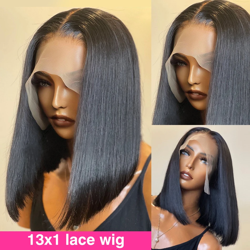 Парик Короткий Боб, прямые парики из человеческих волос 13x1 T, пар...