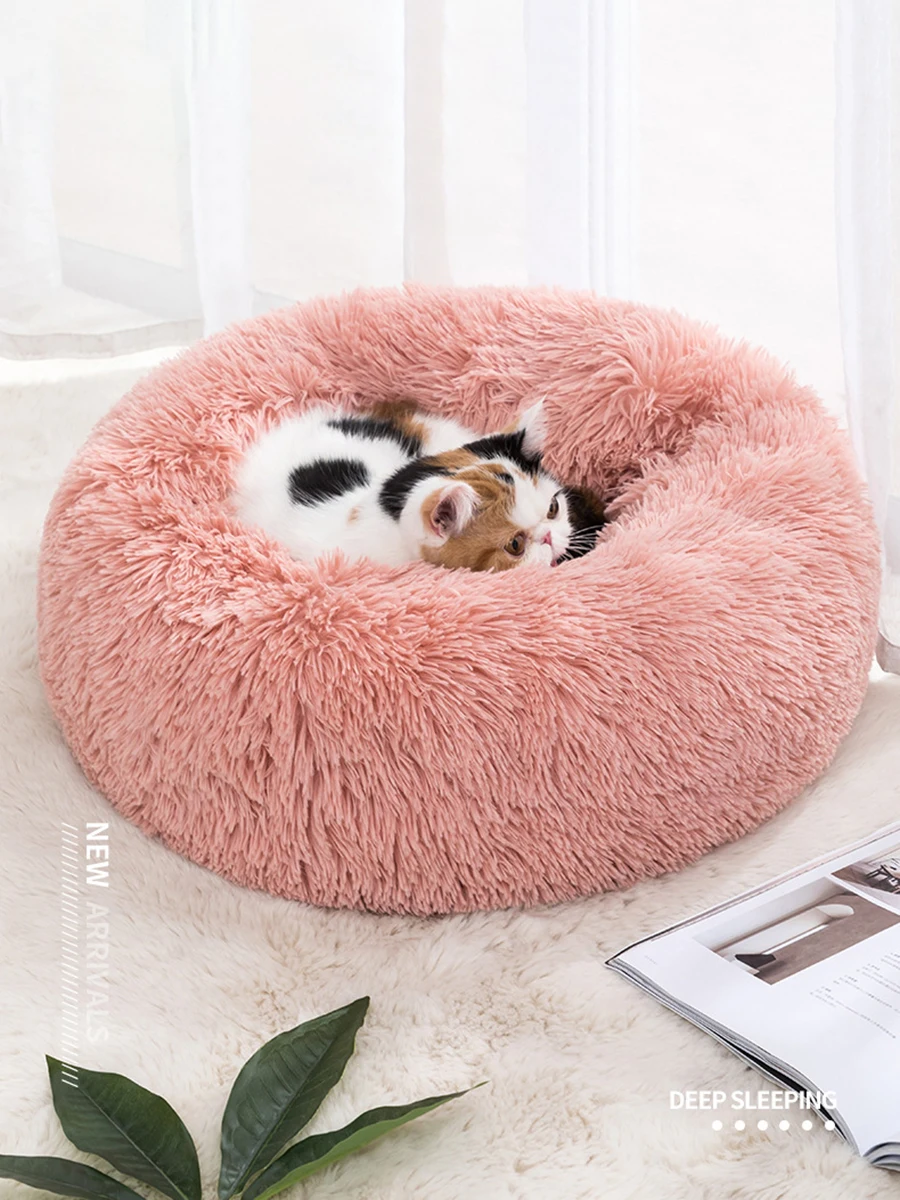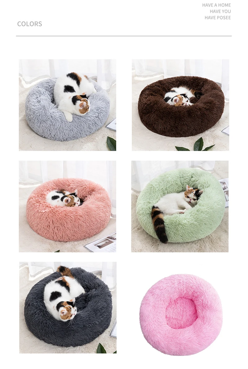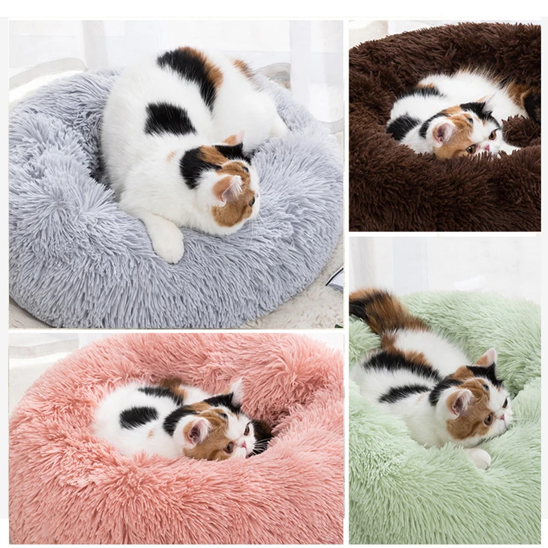 Круглые кошачьи кровати, домик, мягкая длинная плюшевая Лучшая кровать для домашних животных, товары для домашних животных, подушка, кровать для кошки, коврик для кошки, диван для сна с животными