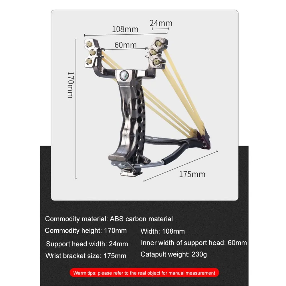 Особенности1. Мощная функция: три слоя эластичного Резинового ремня и эргономичная тонкая ручка. Палец имеет дизайн дуги канавки, который подходит для охоты катапульты пальцев. Он чувствует себя сильным и удобным.2. Точная съемка, три карты и шесть нитей, эластичная резинка3. Утолщенный корпус банта прочный и долговечный, а рамка для пантографа утолщена, что более долговечно и безопаснее4. Мульти направленный точки-бант на голову, с контрольной точки прицеливания, более точный горизонтальный holding прицеливания, и 6 нитей и 4-ниточная, резинок может быть установлен5. Профессиональные охотничьи инструменты: высокая скорость, точная и мощная. Встроенная головка специально разработана для повышения точности головки, особенно для использования на открытом воздухе.Технические характеристикиМатериал товара: углеродный материал ABSВысота товара: 170 ммШирина: 108 ммШирина опорной головки: 24 ммВнутренняя ширина опорной головки: 60 ммРазмер запястья: 175 ммВес катапульты: 230 гТеплые советы: пожалуйста, обратитесь к реальному предмету для ручного измеренияУпаковка