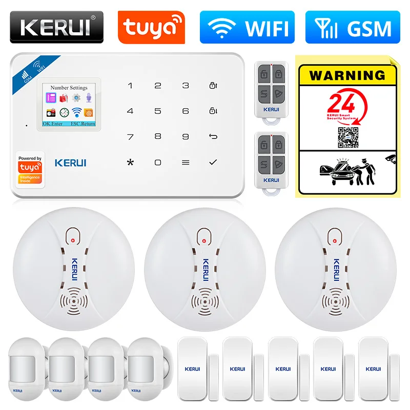 KERUI W181 сигнализация WIFI GSM Tuya умная беспроводная домашняя сигнализация Поддержка Alexa датчик движения Детектор дыма датчик двери окна