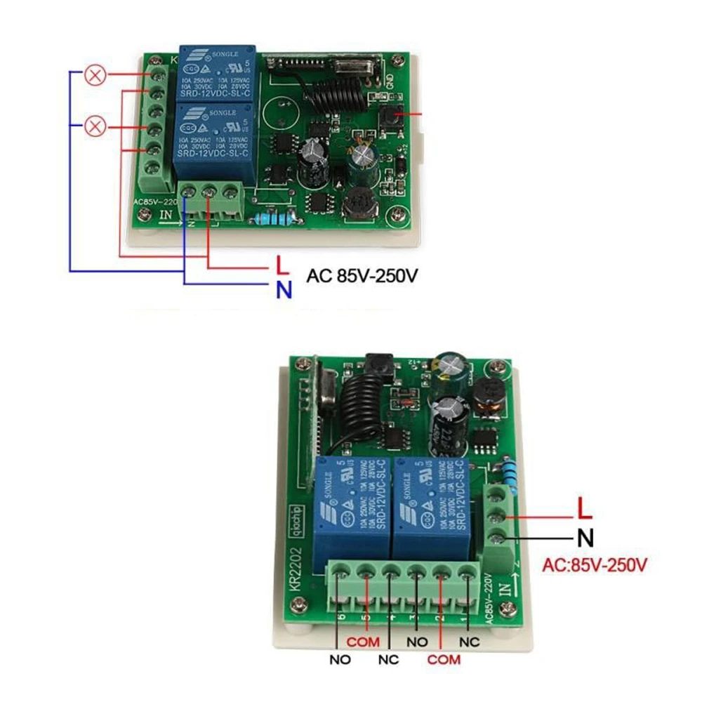 Реле беспроводное 2-канальное Радиочастотное, 220 В переменного тока, 433 МГц, 10 А