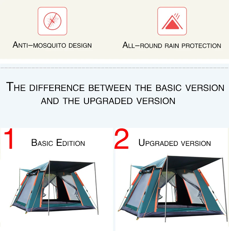 ● Автоматический●SUNSCREEN● Стенты● Настройка● 4 человека●AIRCOOLING● Защита от комаров●RAINPROOF