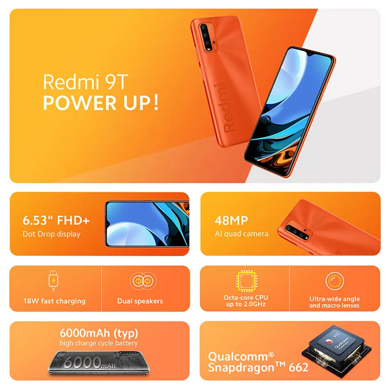 Глобальная версия Redmi 9T, 6000 мА/ч, Батарея, Snapdragon 662 Octa Core<;br/> Процессор продукта-Отправление документов об оплате-Snapdragon 662 Octa Core Процессор, до 2,0 ГГц <;br/> Экран -------- 6,53 дюймов 2340x1080P FHD + Dot Drop Display<;br/>RAM + ROM----4GB + 64 ГБ/4 Гб + 128 Гб <;br/> Камера ------ 48MP + 8MP + 2MP + 2MP AI Quad Rear Camera s, 8MP фронтальная камера <;br/> Батарея ------- 6000 мАч (Typ), поддержка быстрой зарядки 18 Вт, быстрое зарядное устройство In-box 22,5 W <;br/>OS------------MIUI 12, глобальная версия, Поддержка Google Play, Многоязычное и OTA обновление <;br/> Другое ------- WIFI, Bluetooth 5,0, GPS, идентификация отпечатков пальцев, fm-радио <;br/> Содержимое упаковки: redmi 9T/адаптер/кабель USB Type-C/Инструмент для извлечения SIM/мягкий чехол/Руководство пользователя/гарантийный талон <;br/> Сеть:<;br/>Full Netcom, две sim-карты с двумя режимами ожидания (слот Nano SIM x 2 + слот для карты Micro-SD x 1)<;br/>2G: GSM: B2/3/5/8<;br/>3G: WCDMA: B1/2/4/5/8<;br/>4G: TDD-LTE: B38/40/41 (2535-2655 МГц)<;br/>4G: FDD-LTE: b1/2/3/4/5/7/8/20/28<;br/>Redmi 9T<;br/> Восьмиядерный Snapdragon 662 | Четырехъядерный процессор 48 МП AI | Аккумулятор 6000 мА · ч (typ) | 6,53 & quot; FHD + DotDisplay<;br/> Текстура против отпечатков пальцев | Боковой датчик отпечатков пальцев | Защита от брызг <;br/> все, что вам нужно сделать профессиональные снимки <;br/> поможет вам сделать множество захватывающих фотографий независимо от того, где вы находитесь. Запечатлейте великолепные пейзажи, замечательные крупным планом и художественные портреты. Завершение онлайн-встреч.<;br/>48 МП AI quad camera<;br/> сохраните ваши воспоминания кристально чистыми <;br/> видео с задержкой времени, смотрите время полета <;br/> мгновенно передает время через видео с временными интервалами. Записывайте облака, движущиеся по небу, или отслеживайте свой прогресс, направляясь к вашему дому.<;br/>6000 мАч (typ) батарея <;br/> с массивной батареей 6000 мАч (typ), вам не придется беспокоиться о выходе из строя. При температуре менее 200 г телефон также удивительно легкий для телефона с такой высокой емкостью аккумулятора.<;br/> Восьмиядерный Snapdragon 662 <;br/> обеспечивает высокую производительность, предотвращает перегрев устройства и обеспечивает низкое энергопотребление.<;br/> 6,53 & quot; FHD + DotDisplay, высокое разрешение делает изображение более точным, обеспечивая удобный просмотр для ваших глаз.<;br/> двойные динамики обеспечивают отличное качество звука. Басы позволяют почувствовать удар и усиливают чувство погружения.<;br/> Пожалуйста, прочитайте меня перед тем, как сделать заказ.<;br/>1, у нас есть склад ES/PL/FR, для европейского покупателя вы можете выбрать доставку со склада ЕС, как правило, он может доставить в течение 2-3 дней; для заказов выбирается Доставка из Китая, Все заказы будут отправлены в течение 48 часов в рабочие дни.<;br/>2, цена товара не включает налоги или сборы на месте, если посылка застревает на местных рынках, покупателю необходимо связаться с таможней и сделать таможенное оформление. Мы не несем таможенных пошлин или каких-либо сборов, вызванных таможней или отказом покупателя от посылка.<;br/>3. Если вы выбираете DHL, это не включает в себя DHL удаленную стоимость/таможенную пошлину, или любую комиссию, взимаемую DHL за таможенное оформление или стоимость складского хранения.<;br/>4. Пожалуйста, откройте посылку в присутствии сотрудника почты, если посылка повреждена или пуста (украдена), пожалуйста, попросите почтовое отделение предоставить официальный документ, особенно запрос на Претензию <;br/>5. Если у вас есть какие-либо проблемы с вашим телефоном, пожалуйста, сначал