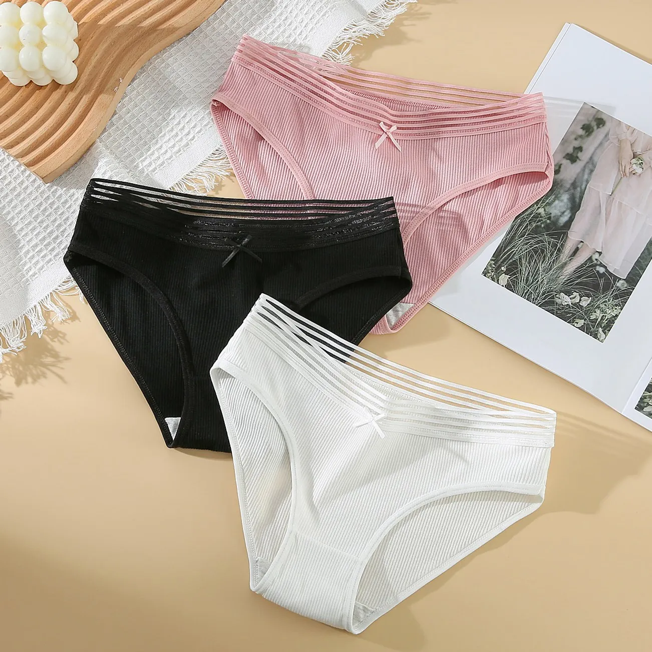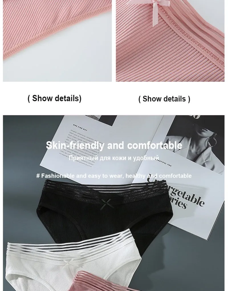 3 шт., Чистый цвет костюм-стринги женские трусики merries трусики l...