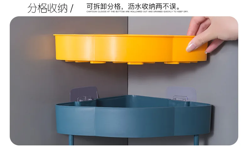 Пластиковая настенная угловая полка, треугольная полка для хранения без перфорации с крючками, полка для хранения шампуня, геля для душа, аксессуары для ванной комнаты