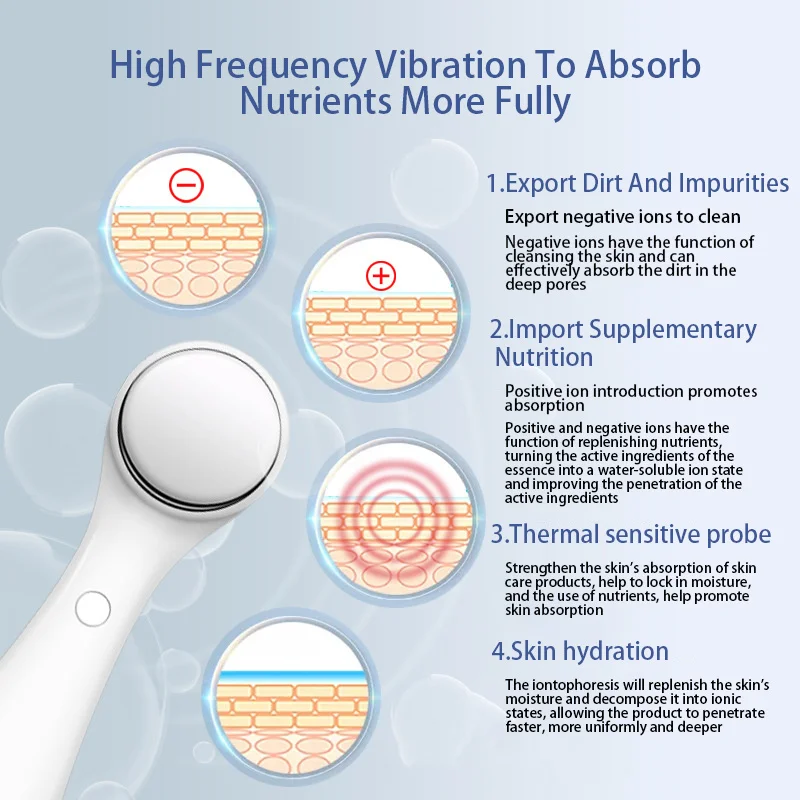 Особенности:Этот товар сочетает в себе два ухода за кожей: 1. Глубокое очищение использует непрерывные волны для удаления омертвевших клеток с поверхности кожи, чтобы сделать вашу кожу более свежей, омолаженной и ультра гладкой. 2. Для лечения сонофореза используются пульсирующие волны для увеличения проницаемости вашей кожи, помогая эффективно поглощать сыворотки. Это в сочетании с усиленным кровообращением от ультразвуковых волн помогает пухлить кожу, уменьшая появление тонких линий и морщин.Функция:1. Глубокое очищение: способ 45 градусного угла для ускорения метаболизма клеток эпидермики и обновления его нормального уровня обновления, повышает выпадение пожилых и нерегулярных аберрантных клеток, смягчает кератин, отрегулируйте эпидермические клетки, восстановив эластичность кожи и обратившись к твердой, гладкой и нежной коже. 2. Лидирующий в питании и активации кожи путем принятия ультразвуковой вибрации и тепидного эффекта, он может способствовать циркуляции крови внутри дермы, ускоряет лимфатический возврат, токсин разряда, который накапливается в более глубокой коже и устраняет мертвые клетки, чтобы избежать чрезмерного скопления клеток корнеозного слоя, таким образом, чтобы вода и питание быстро переносились, Улучшает клеточную & # x27;s проникаемость, усиливает уход за кожей поглощение продукта, улучшает увлажнение кожи.Примечания:1. Перед и после использования продукта, пожалуйста, протрите нержавеющую головку лопаты спиртом2. Не ударяйте и не столкнетесь3. Не оставайтесь на коже более 3 секунд. Если вы чувствуете себя горячим, пожалуйста, возьмите его и проверьте машину немедленно