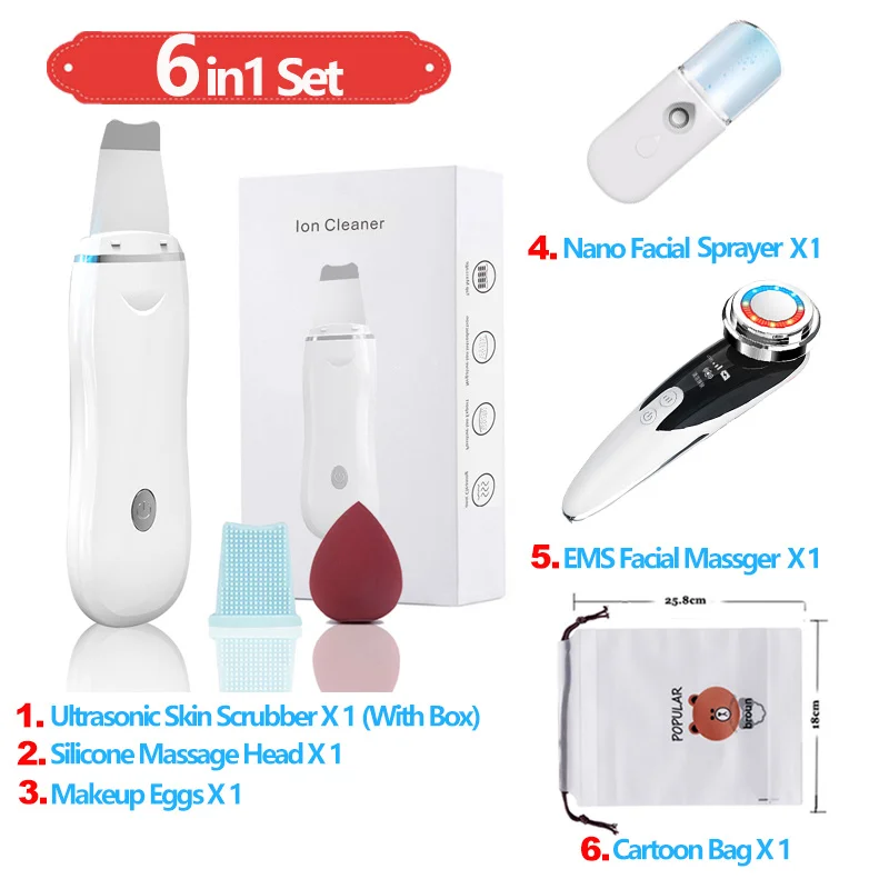 Скребок ультразвуковой для чистки кожи, устройство для глубокого очищения пор, ионная лопата, 2 + 4 комплекта, для удаления черных точек