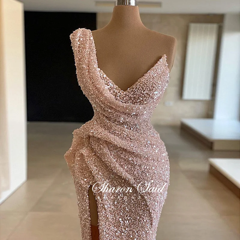 Длинное вечернее платье-Русалка с блестками и бусинами, Привлекательное платье с одним открытым плечом и высоким разрезом для выпускного вечера, женские платья для свадебной вечеринки, выпускного вечера, 2022