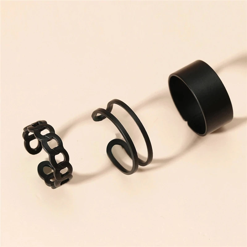 Комплект черных геометрических колец в стиле панк для женщин и мужчин, новинка 2022, Модный Универсальный Регулируемый комплект колец, минималистичные украшения, аксессуары, подарки