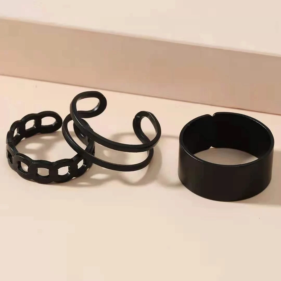 3 шт.компл. черное кольцо в стиле Панк Простой дизайн винтажные зол...