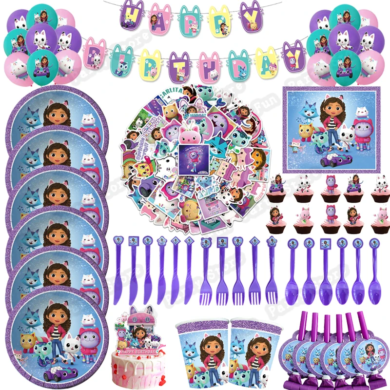 Gabby кукольный домик с кошками, украшение для дня рождения, шары для детского дня рождения, Одноразовая чашка, тарелка, шарик, посуда, товары для вечеринок